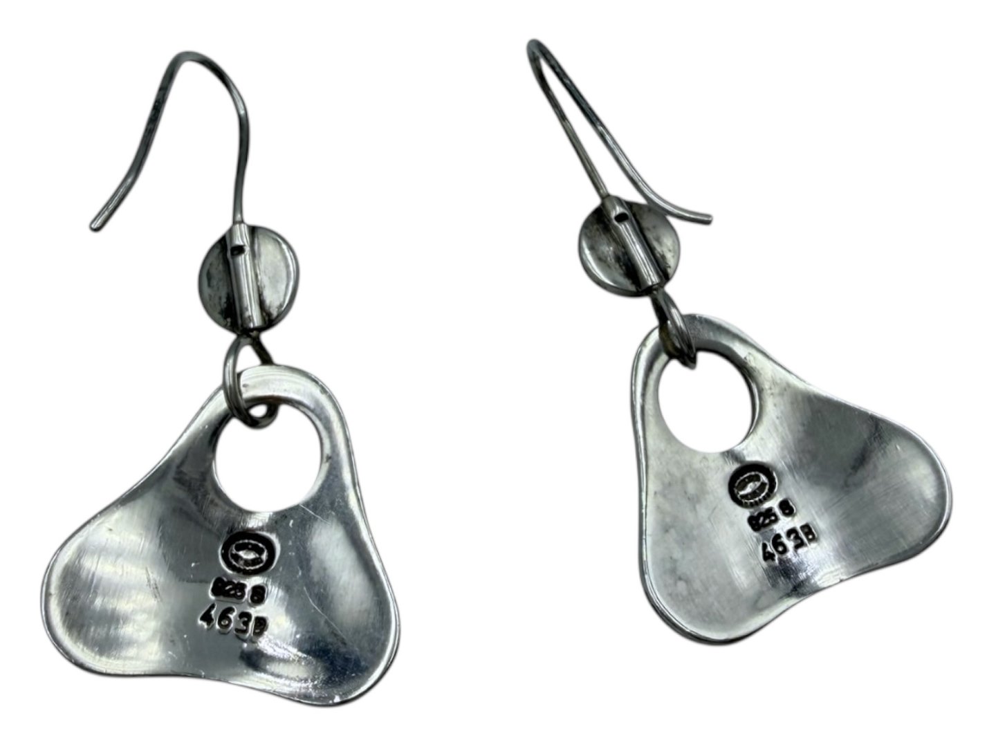 Georg Jensen sterling silver, modern earrings. Design number 463B. Designed by Regitze Overgaard. They measure 2.1 by 2.0 cm. Excellent condition.