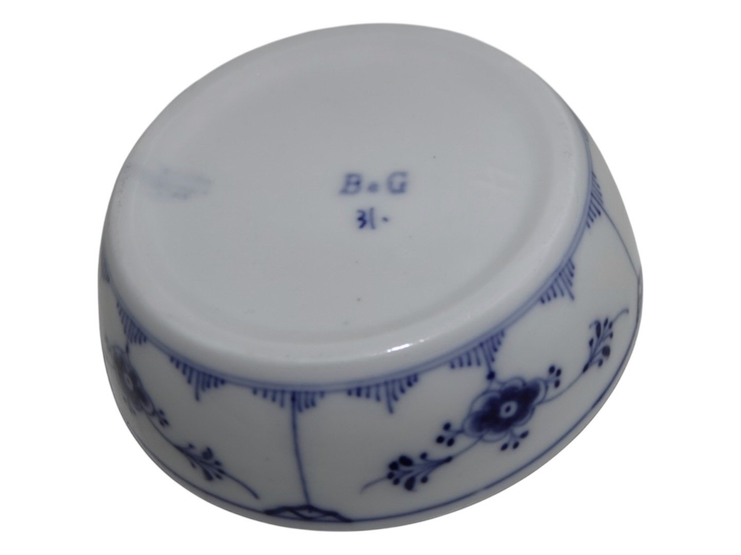 Bing & Grondahl Blue Traditional (Blue Fluted), divided tray. The factory mark tells, that this was produced between 1853 and 1895. Factory first. Diameter 10.3 cm. Perfect condition with no chips, cracks or repairs.