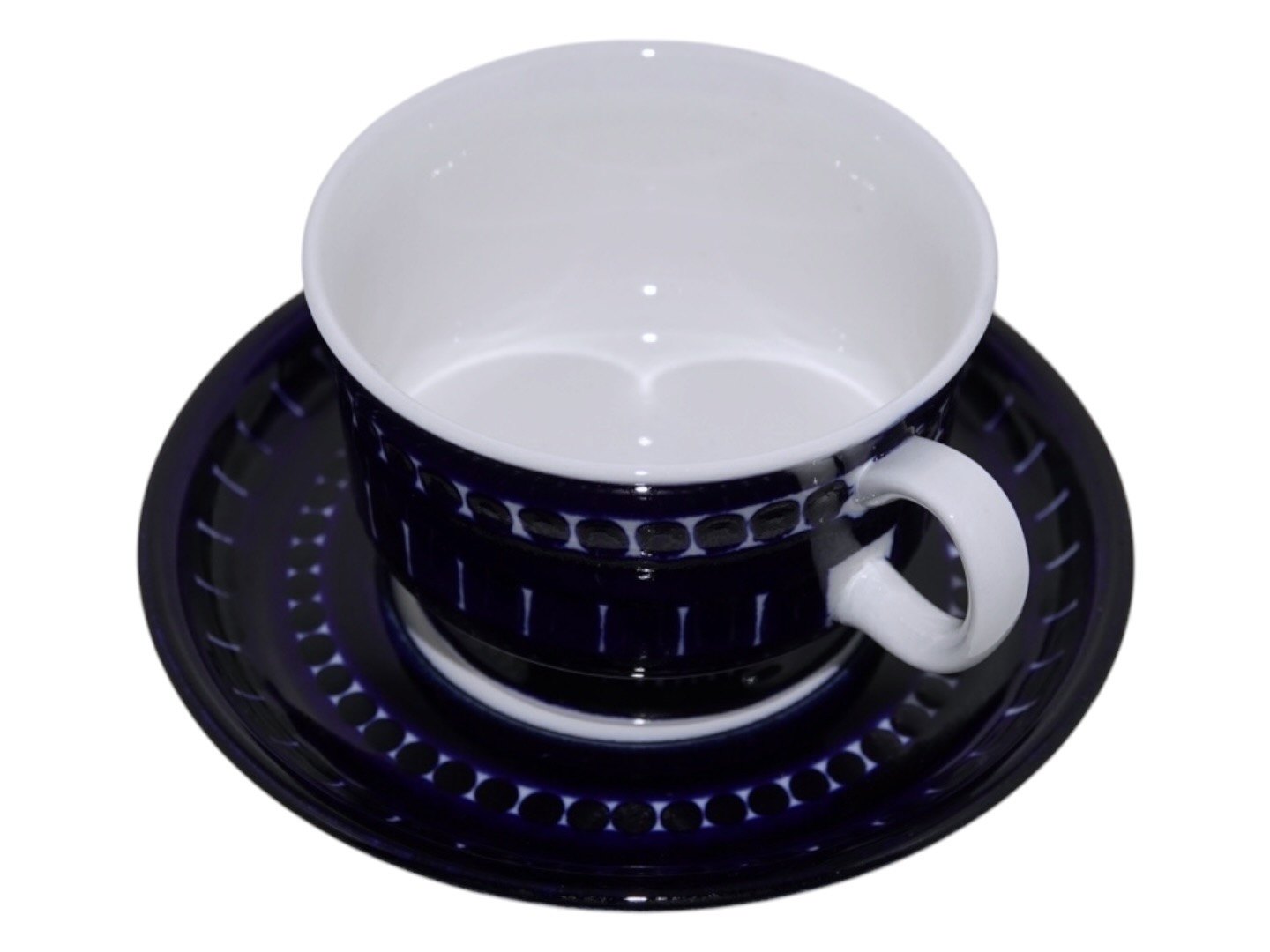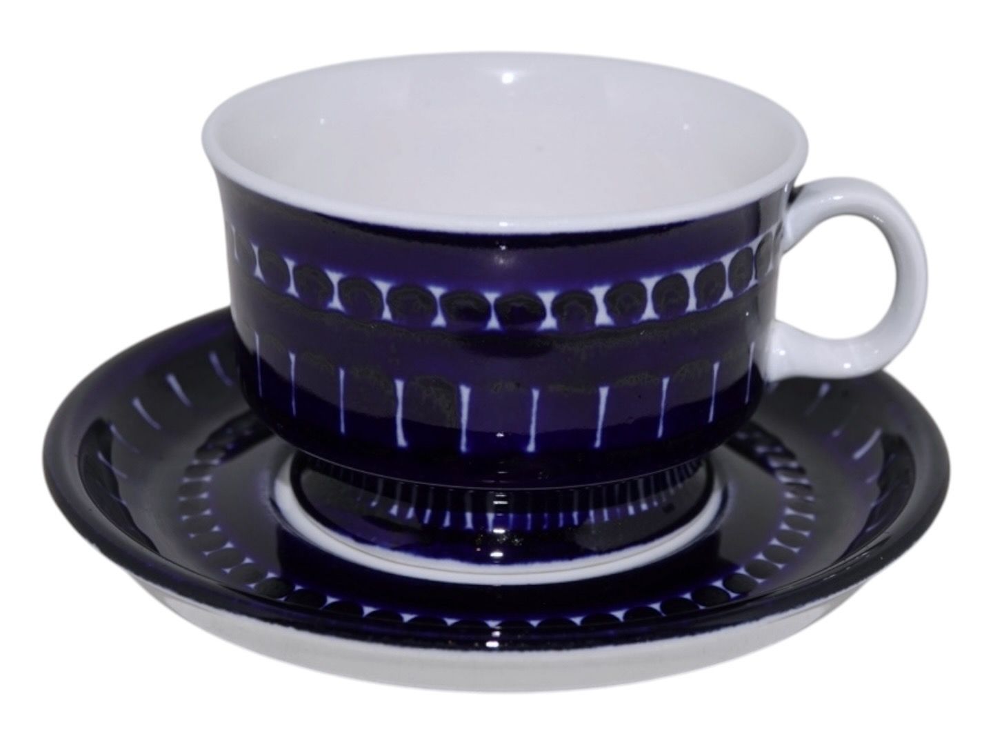 Arabia Finland Valencia, small coffeecup with matching saucer. Designed by Ulla Procope in 1960. Diameter of the cup is 7.5 cm. and the height is 4.8 cm. Perfect condition.