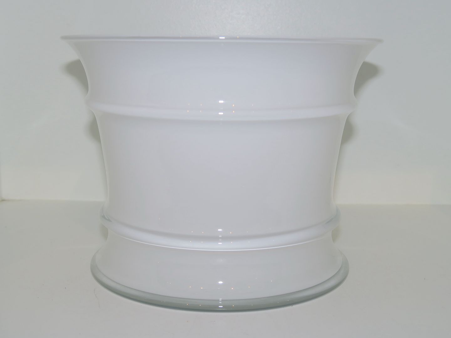 Holmegaard, MB urtepotteskjuler - stor model. Hvidt opalglas. Designet af Michael Bang i 1981. Diameter 17,5 cm., højde 13,1 cm. Perfekt stand.