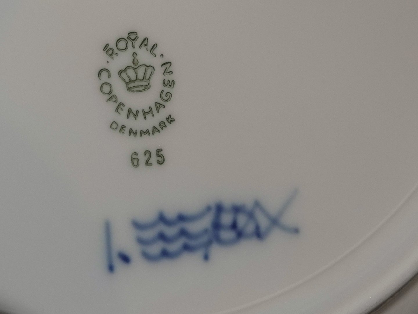 Royal Copenhagen Musselmalet Halvblonde, middagstallerken. Dekorationsnummer 625. Disse er produceret mellem 1992 og 1999 og malet i Danmark. 2. sortering. Diameter 25,0 cm. Perfekt stand uden fejl.
