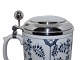 Royal Copenhagen Musselmalet Riflet, sjældent krus i overstørrelse med sterlingsølv låg i flot kraftig kvalitet.