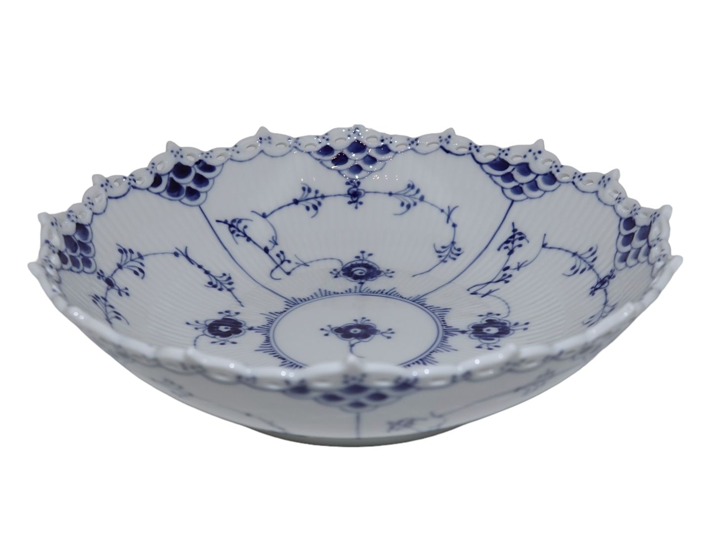 Royal Copenhagen Musselmalet Helblonde, rund skål. Fabriksmærket viser, at denne er produceret i mellem 1969 og 1974. Dekorationsnummer 1/1018. 1. sortering. Diameter 20,5 cm. Perfekt stand uden fejl.