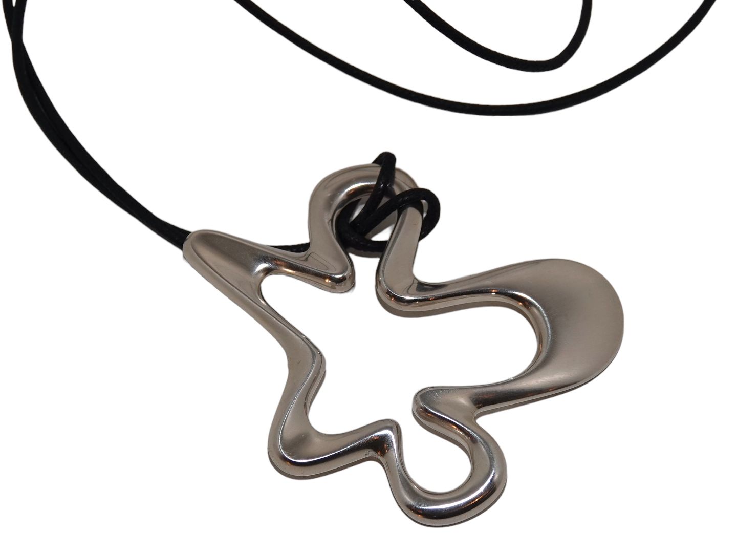 Georg Jensen sterling sølv, stort Splash vedhæng med original lang sort snor.