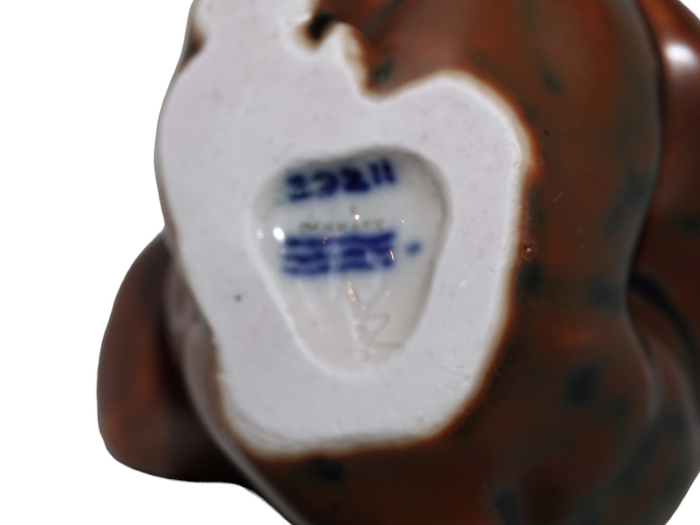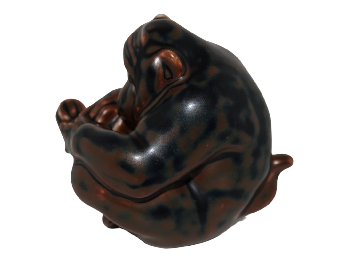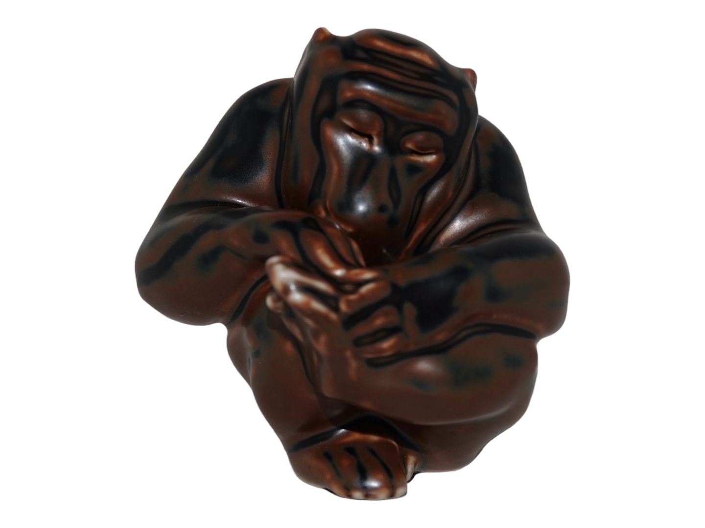 Lille Royal Copenhagen stentøjsfigur, abe. Designet af Knud Kyhn. Dekorationsnummer 20211. 1. sortering. Måler 9,5 x 8,5 cm., højde 8,3 cm. Perfekt stand uden fejl.