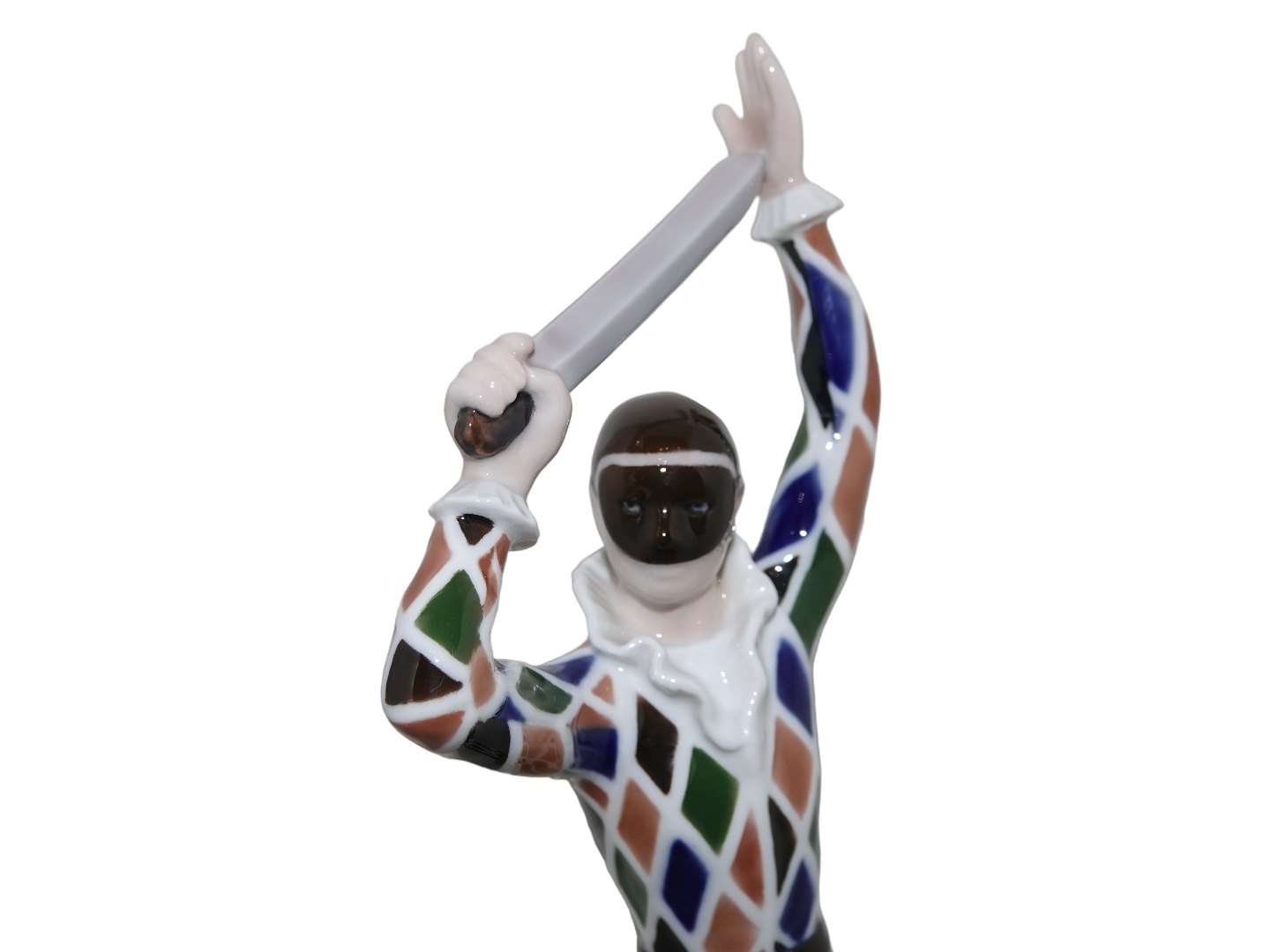 Bing & Grøndahl Harlekin figur fra Tivoli serien. Af fabriksmærket kan det udledes, at denne er produceret mellem 1962 og 1970. Dekorationsnummer 2354. 1. sortering. Højde 28,5 cm. Perfekt stand uden fejl.