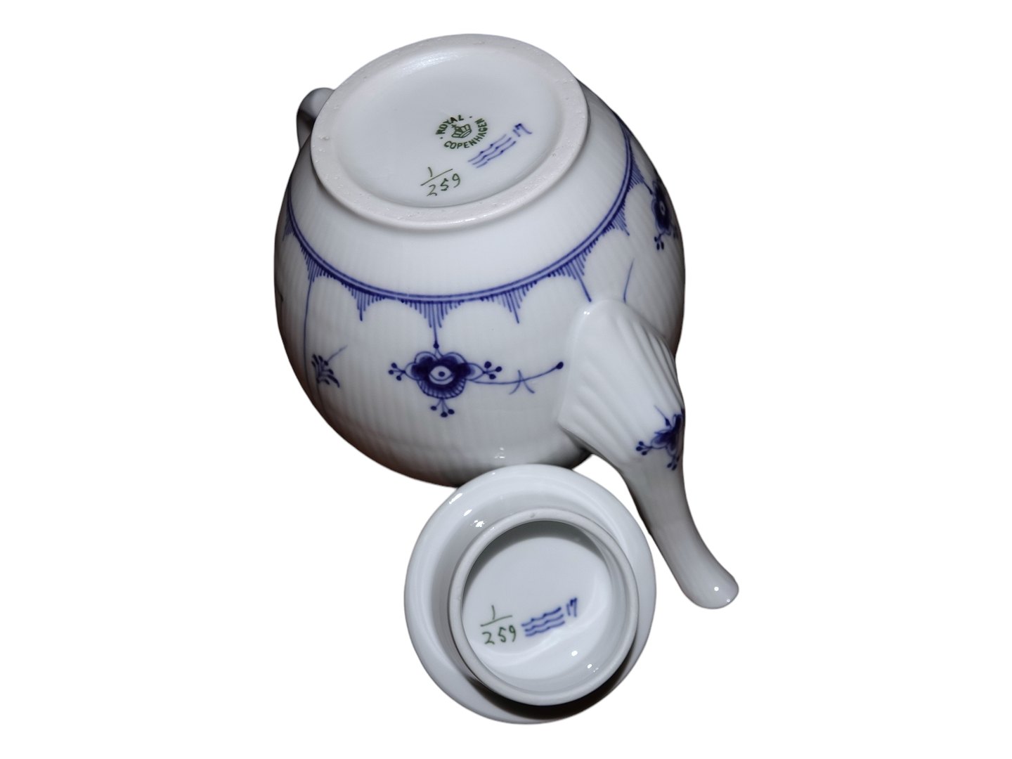 Royal Copenhagen Musselmalet Riflet, tekande.