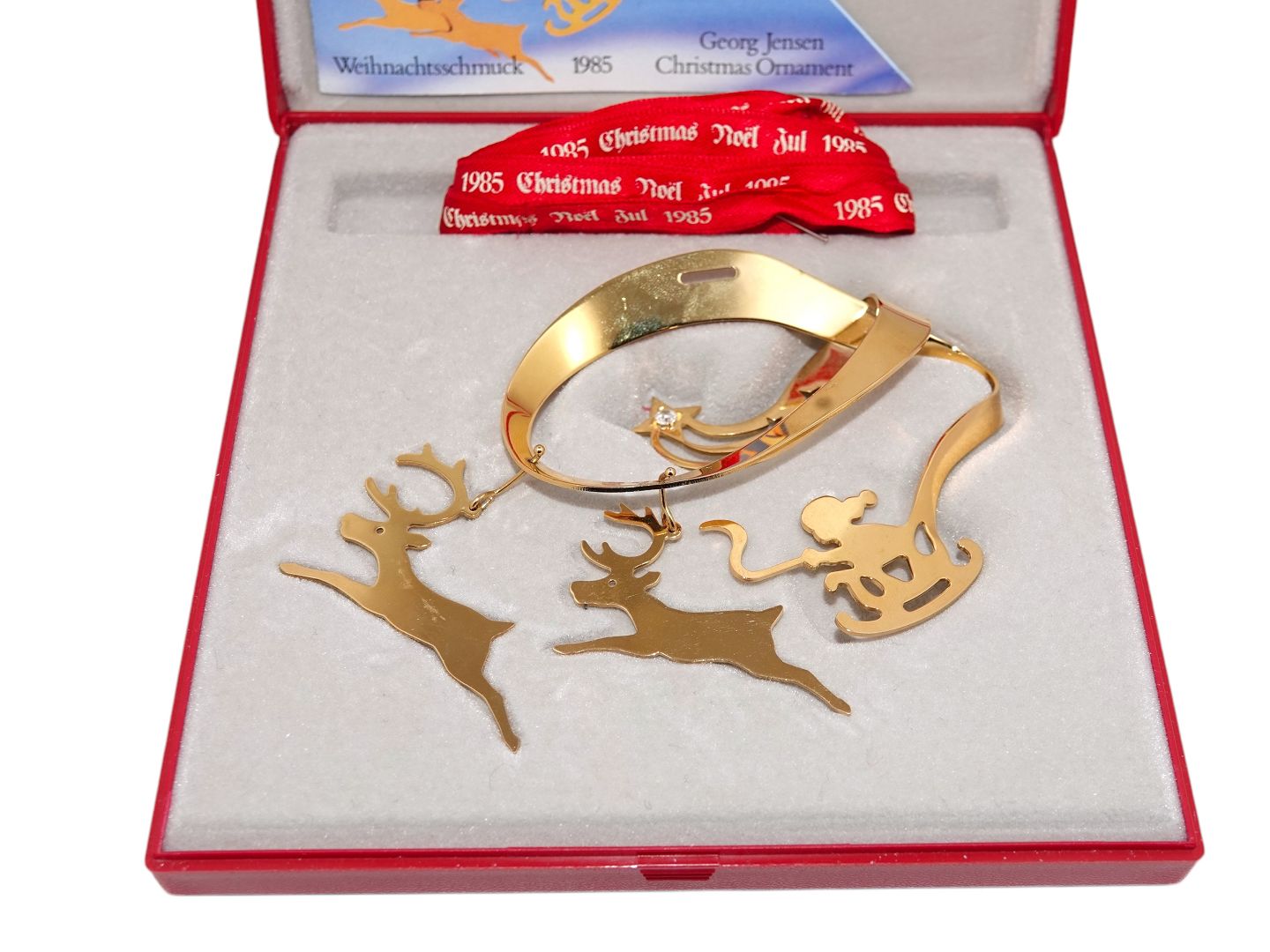 Georg Jensen Juleuro fra 1985 - Bjældeklang. Messing belagt med 24 karat bladguld. Ligger i original rød æske med tilhørende rødt bånd. Der er skrevet "1985" med sort tusch på æsken. Fin og velholdt stand.