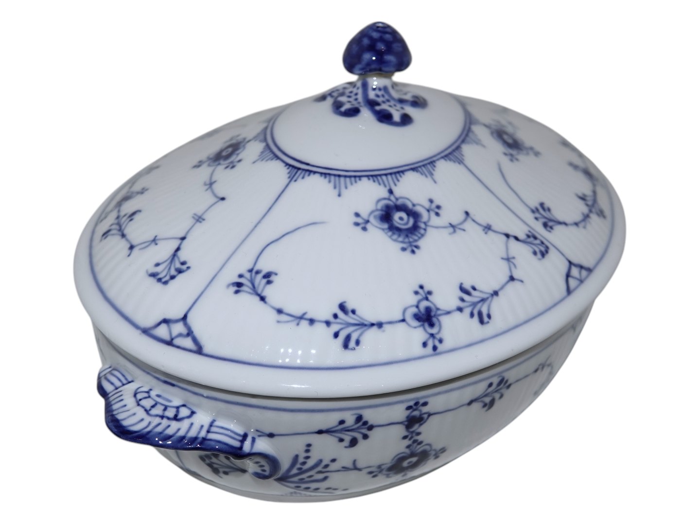 Royal Copenhagen Musselmalet Riflet, sjælden lille skål med låg (lille terrin).