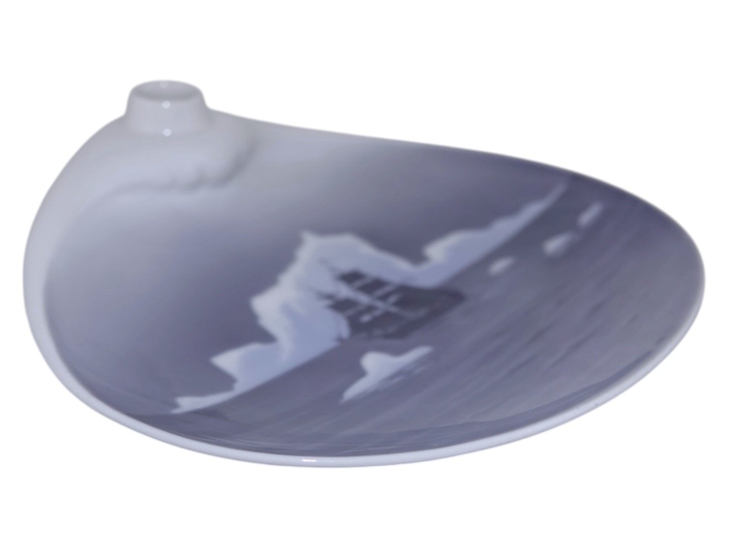Royal Copenhagen unika asiet/blækhus med motiv fra Grønland. Der mangler et lille låg. Titel bagpå "S/u Hvalfiskeri Godt Nytår 1929 J. C. Hempel". 1. sortering. Måler 18,8 x 17,0 cm. Perfekt stand uden fejl.