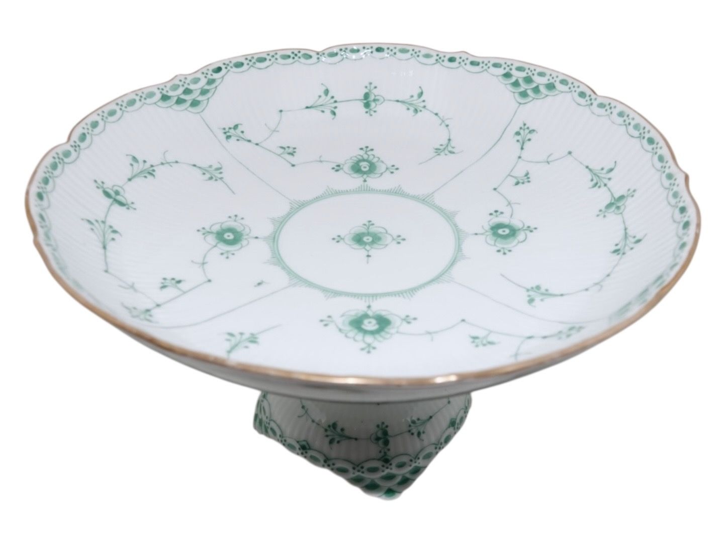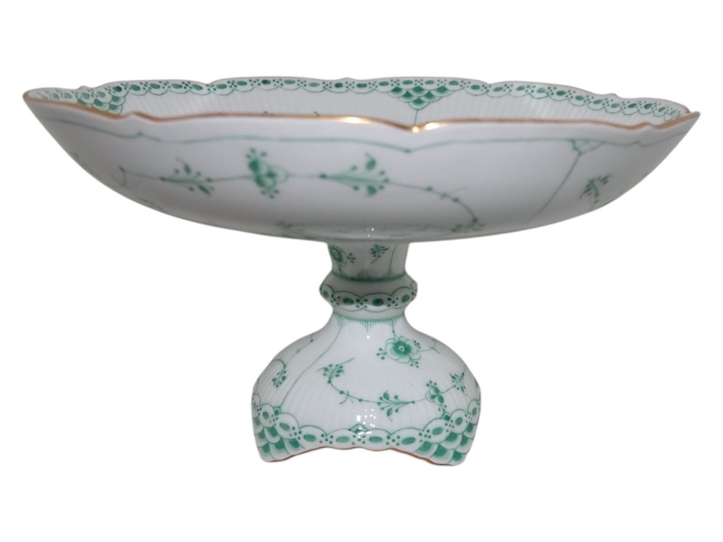 Royal Copenhagen Grøn Musselmalet Halvblonde med guldkant, kageopsats.