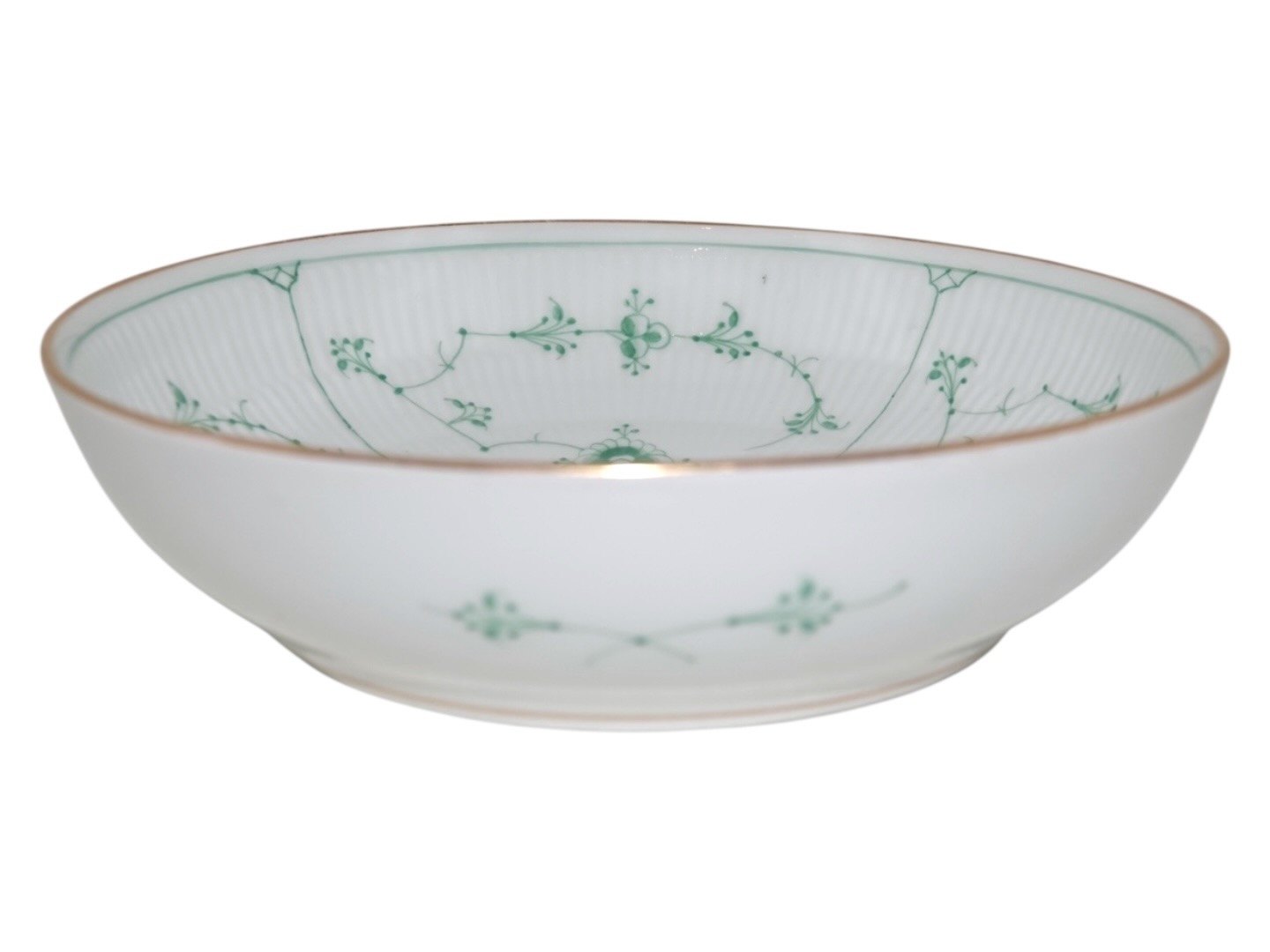Royal Copenhagen Grøn Musselmalet Halvblonde med guldkant, rund skål.