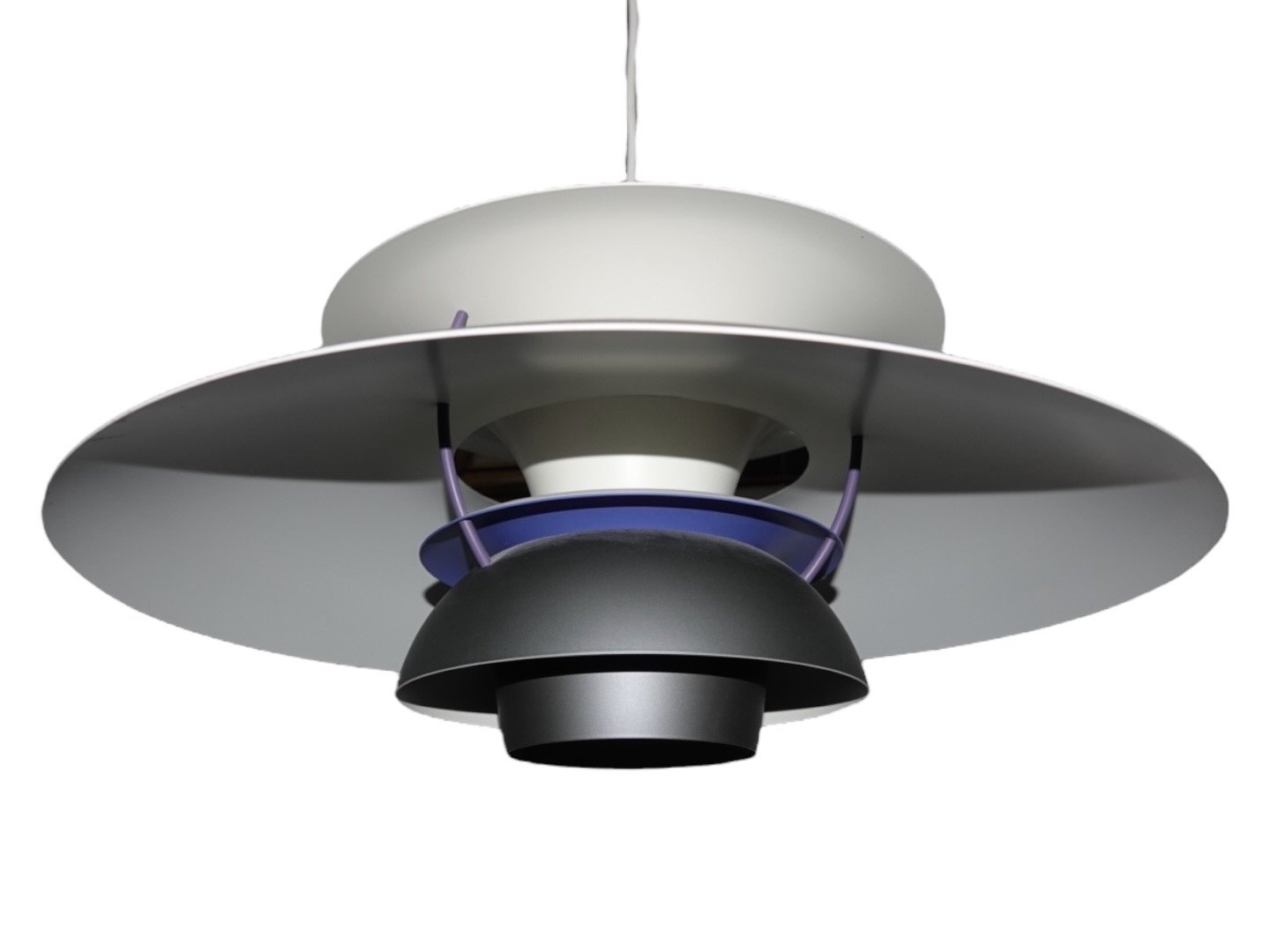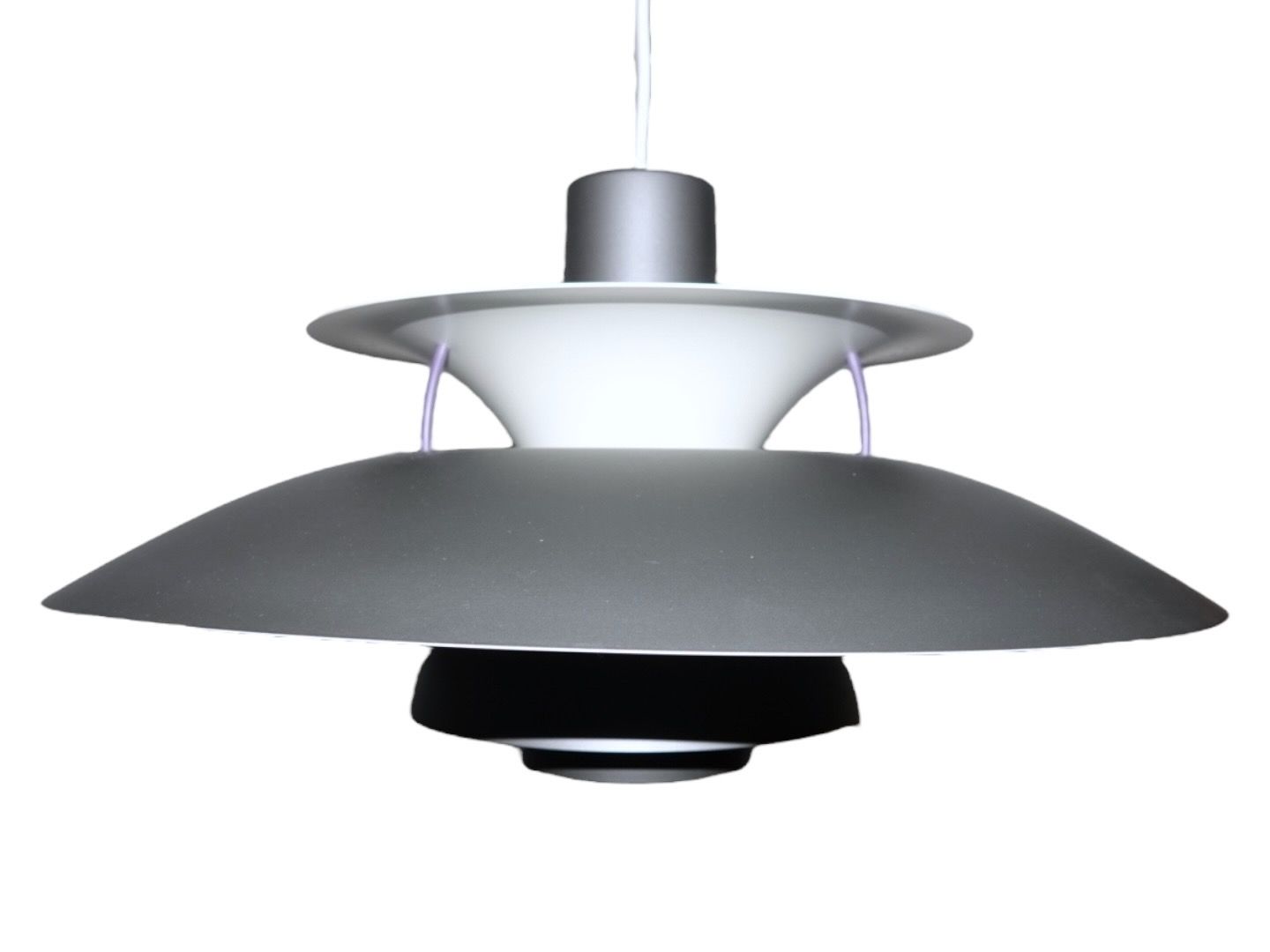 Poul Henningsen, PH 5 Koksgrå Loftslampe. Produceret hos Louis Poulsen omkring 2000. Diameter 50 cm. Fin og velholdt stand. Denne sendes ikke men den kan hentes i vores forretning.