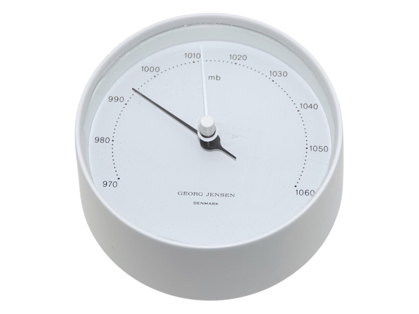 Georg Jensen Barometer i hvid kasse med hvid skive.