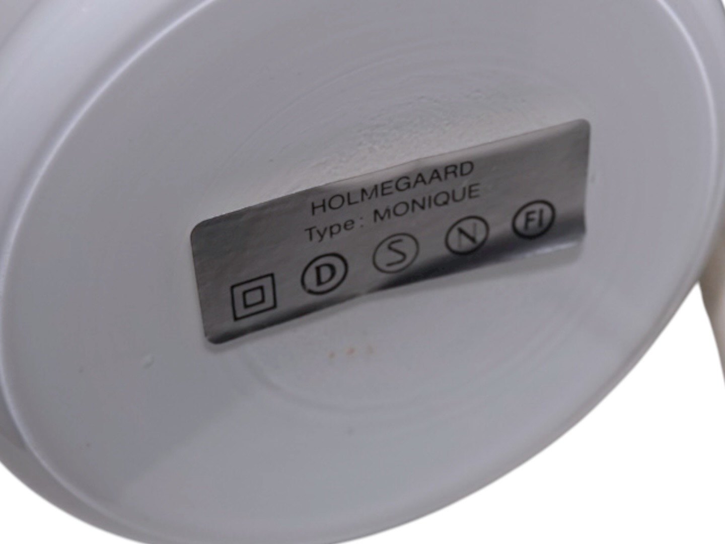 Holmegaard lille Monique bordlampe i hvidt opalglas. Designet af Michael Bang i 1982. Højde 15,5/23,5 cm. uden/med fatning. Der er en medfødt lille bobbel i glasset på foden, se sidste foro, ellers perfekt stand.