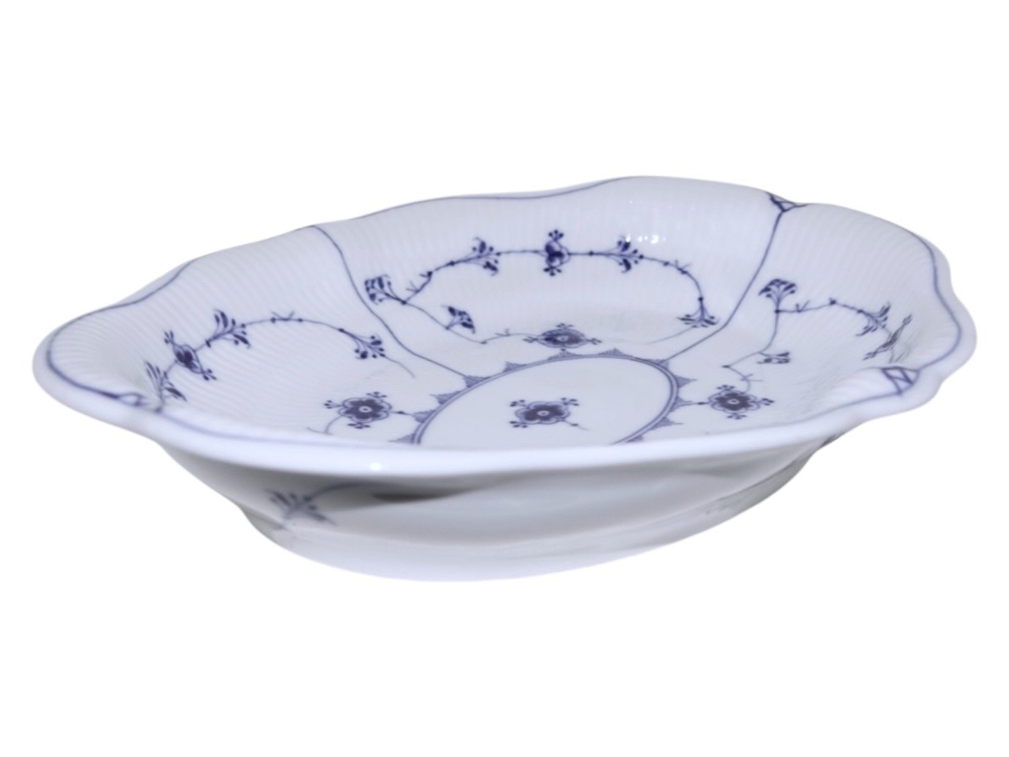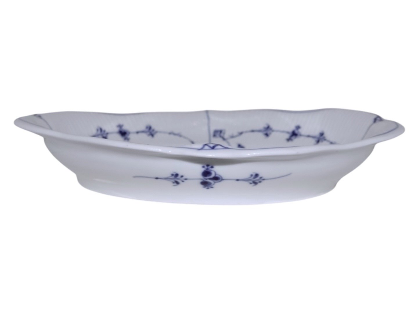 Royal Copenhagen Musselmalet Riflet, sjælden brødbakke. Fabriksmærket viser, at denne er fra mellem 1898 og 1923. Dekorationsnummer 1/388. 3. sortering. Måler 31,0 x 24,5 cm. Perfekt stand uden fejl.