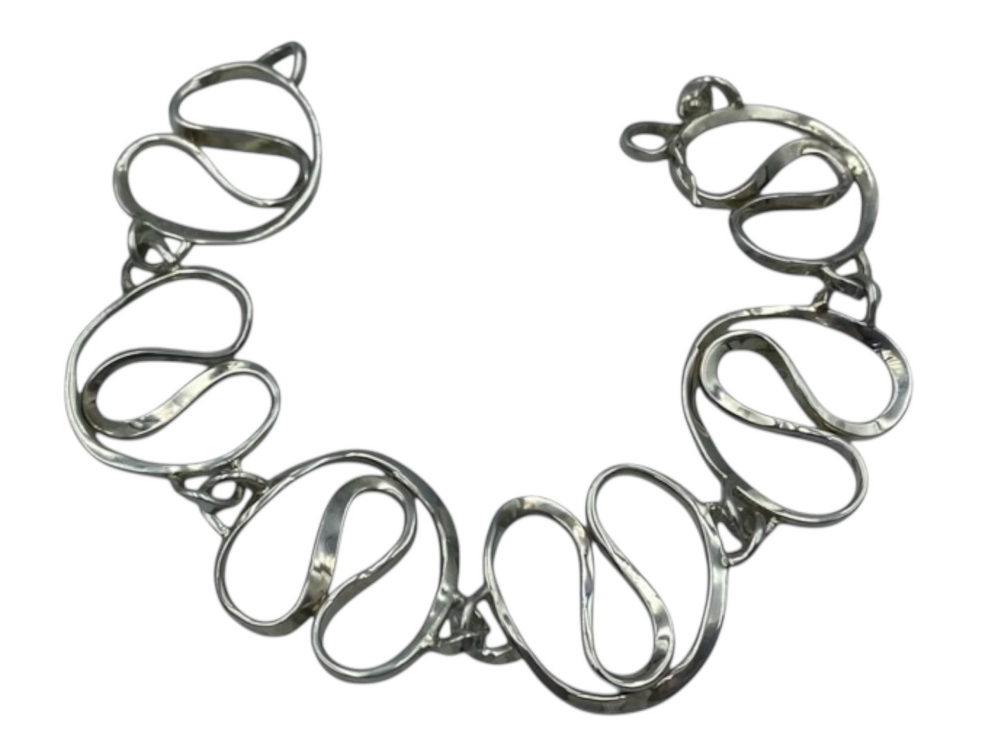 Mikkel Bording Pedersen sterlingsølv, moderne og bredt armbånd med hjerter.