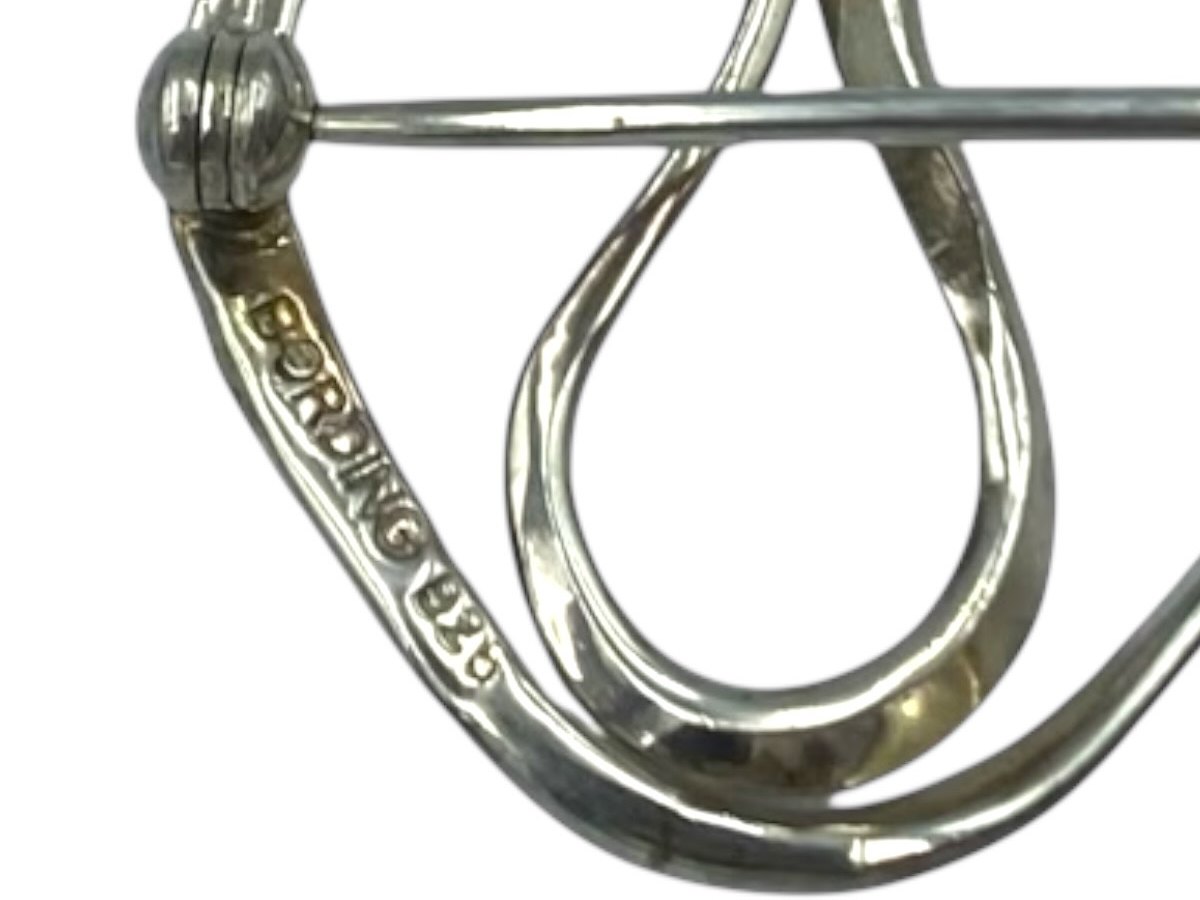 Mikkel Bording Pedersen sterlingsølv, moderne broche i form af et hjerte. Stemplet "BORDING 925S". Mikkel Bording Pedersen var sølvsmed i Hjørring fra 1997 til 2000. Måler 2,5 x 2,2 cm. Fin og velholdt stand.