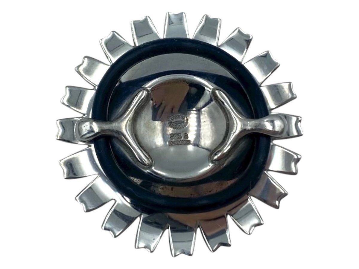 Georg Jensen sterlingsølv Sort Daisy Marguerit vedhæng i lædersnor.