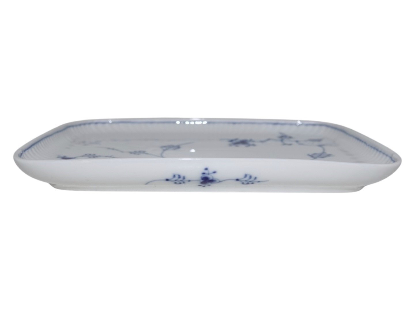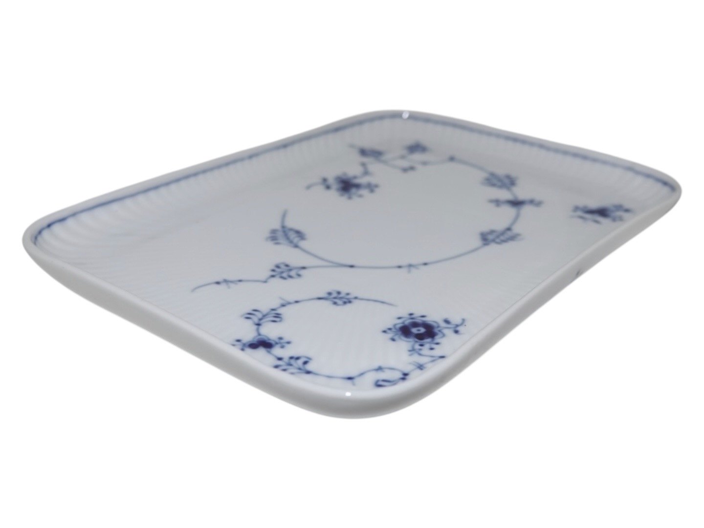 Royal Copenhagen Musselmalet Riflet, bakke. Dekorationsnummer 365. 3. sortering. Længde 22,0 cm. Perfekt stand uden fejl.