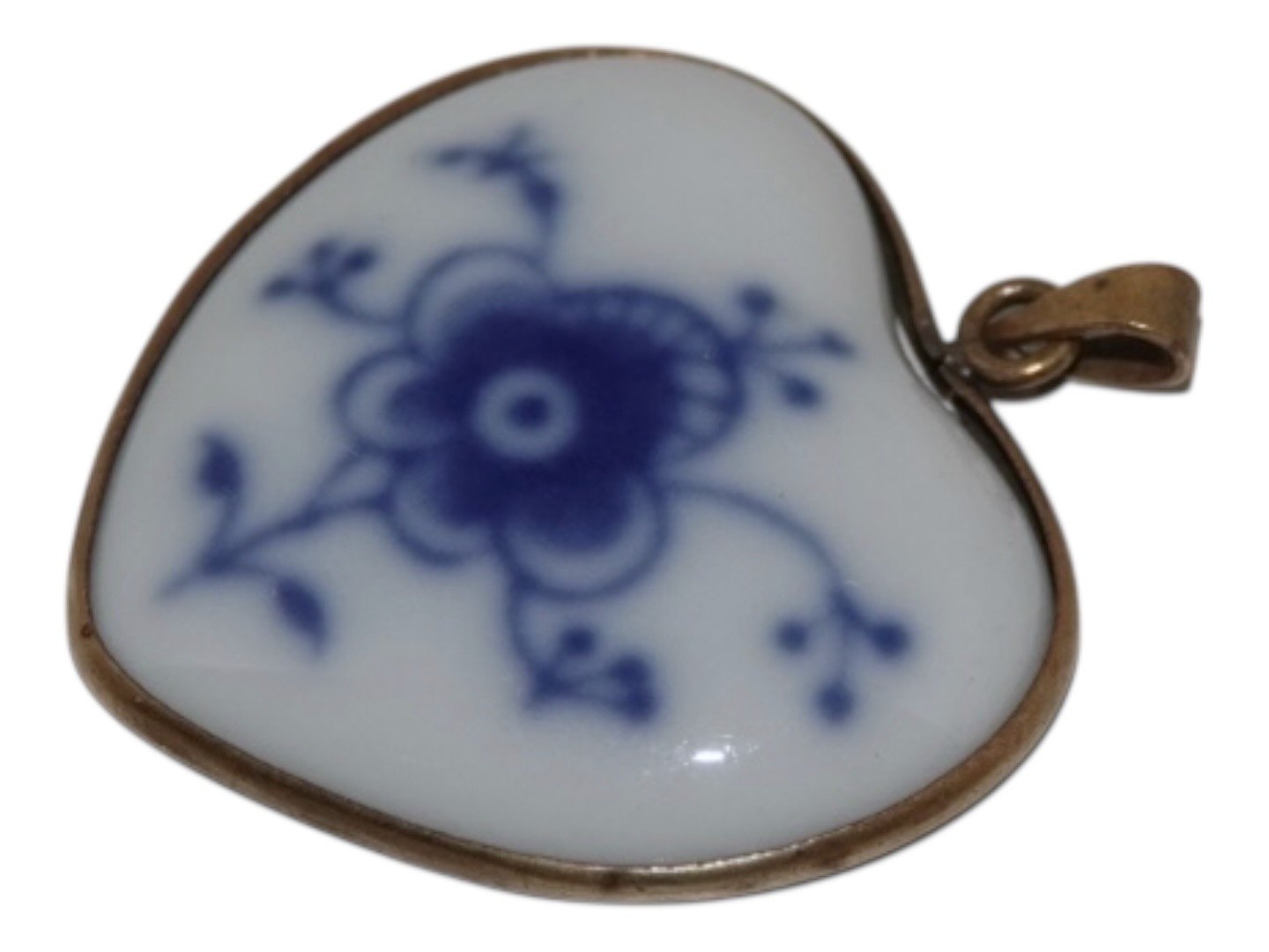 Bing & Grøndahl Musselmalet / Blåmalet, hjerte vedhæng med messingkant.