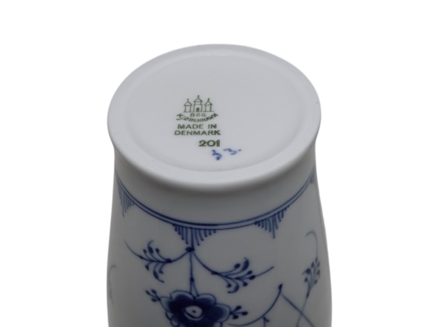 Bing & Grøndahl Blåmalet / Musselmalet, vase. Dette er produceret mellem 1952 og 1958. Dekorationsnummer 201. 1. sortering. Højd 13,1 cm. Perfekt stand uden fejl.