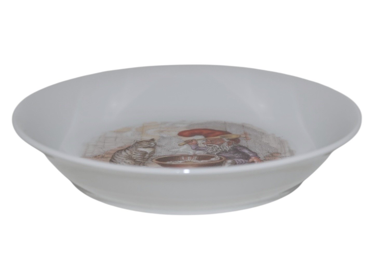Royal Copenhagen julestel, asiet med julenisse og kat. 1. sortering. Diameter 13,7 cm. Perfekt stand uden fejl.