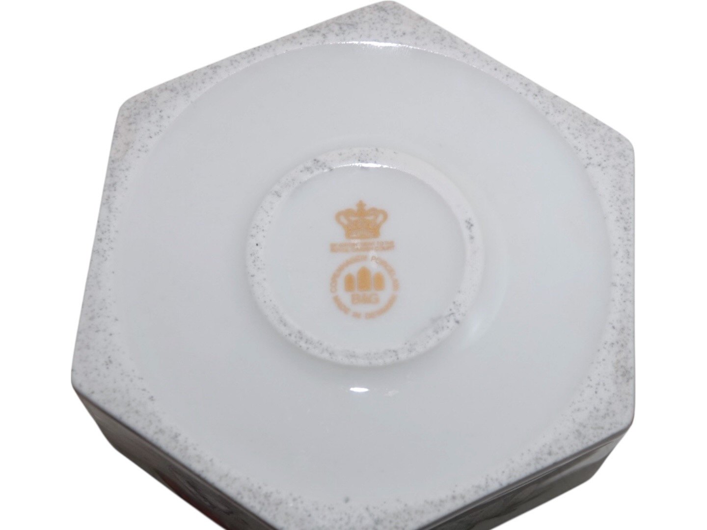 Måler 12,2 x 12,2 cm., højde 5,5 cm.