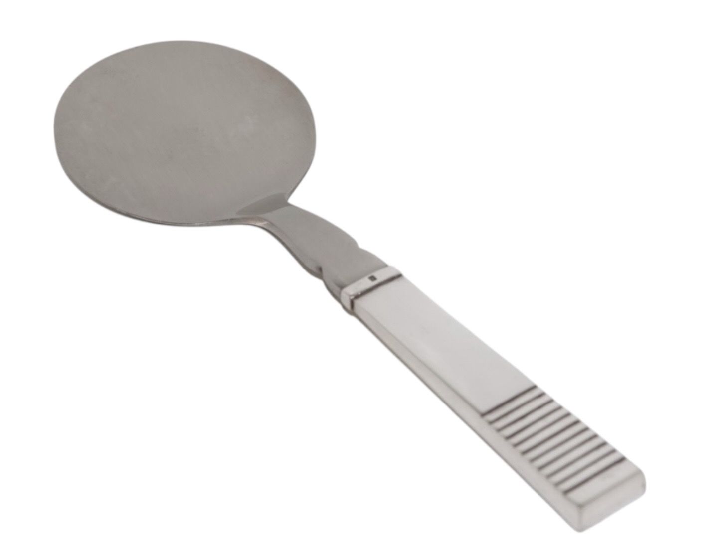 Georg Jensen Parallel (also called Relief), sterling silver and stainless steel, cake spade. Length 19.8 cm. Excellent condition with no engravings.