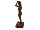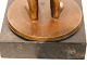 Volmer Bahner (1912-1995) bronze figur af nøgen dame der reder sit hår. Hun står på en sten sokkel.