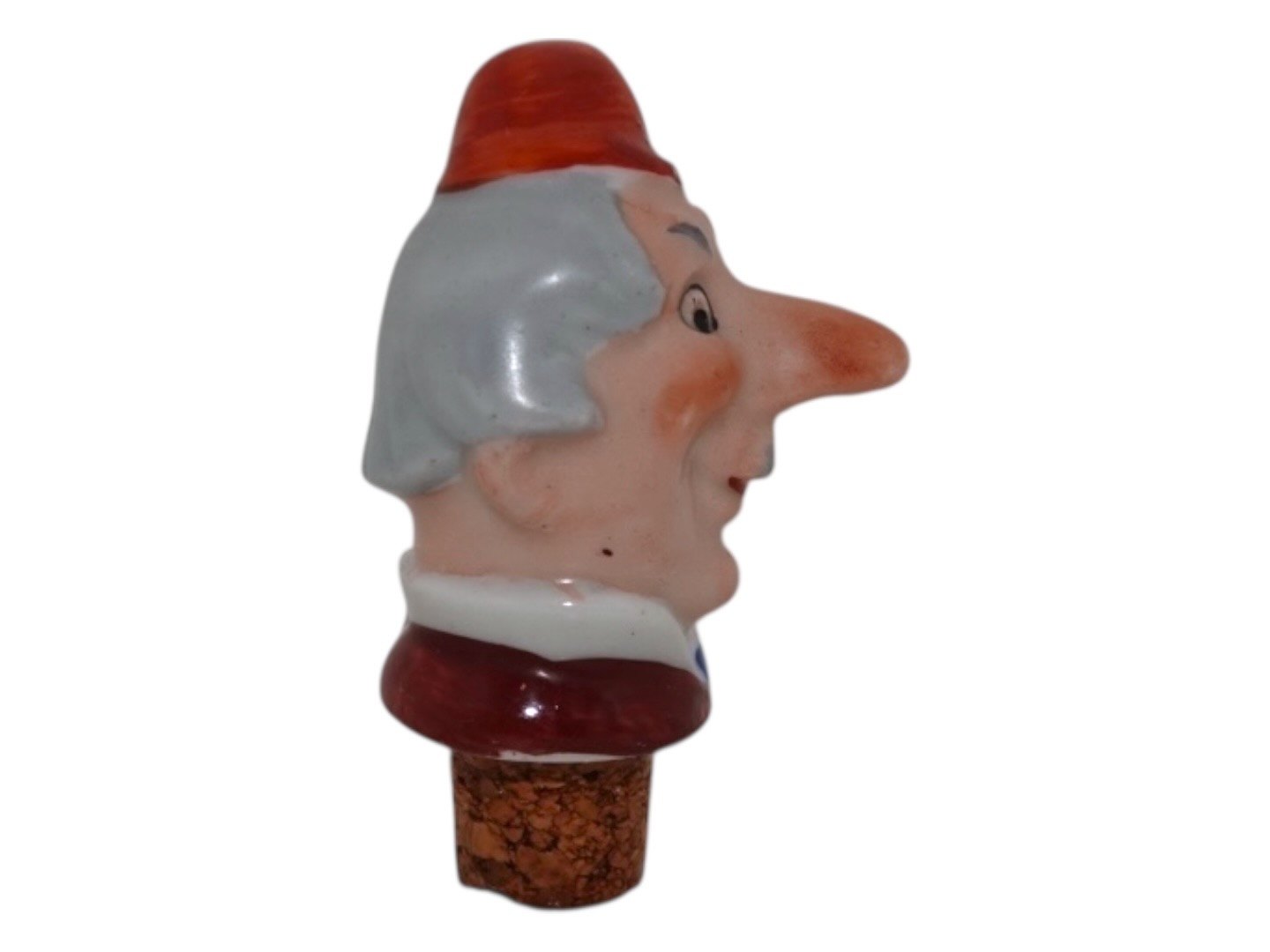 Flaskeprop af julenisse fra ca. år 1890-1900. Længde 7,5 cm. inklusiv kork. Fin og velholdt stand.