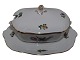 Royal Copenhagen Let Saksisk Blomst, sjælden firkantet sovseskål med låg. Af fabriksmærket kan det udledes, at denne er produceret i mellem 1898 og 1923. 2. sortering. Længde 24,2 cm. Perfekt stand uden fejl.