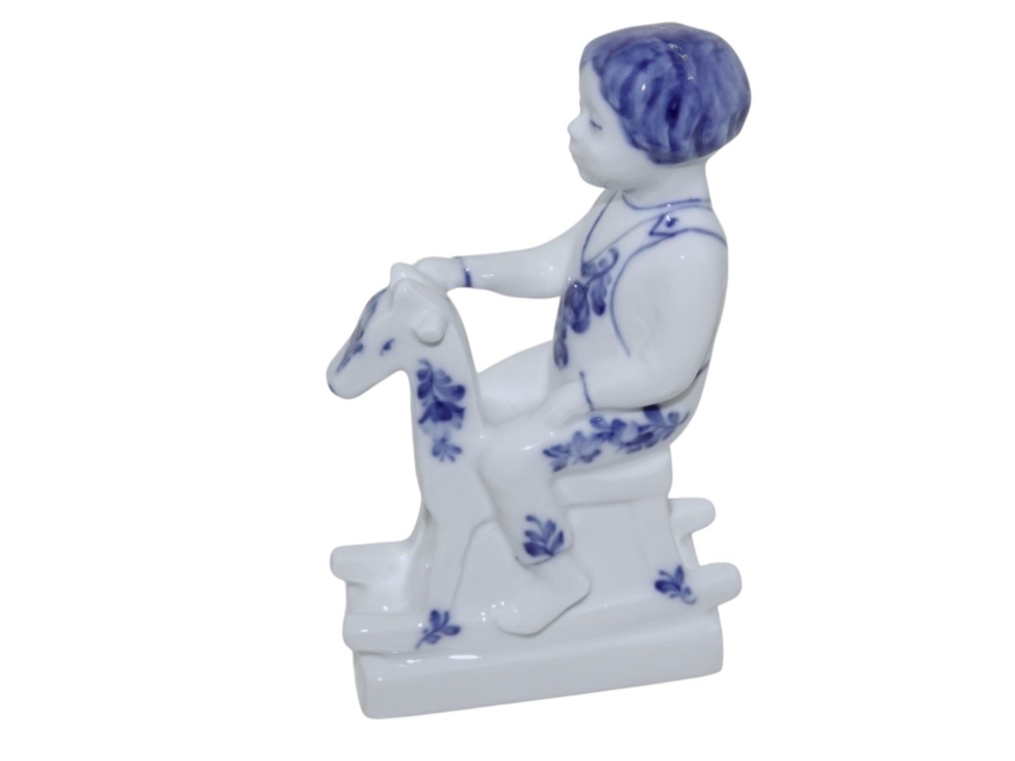 Royal Copenhagen Blå Blomst, sjælden figur af dreng på gyngehest.