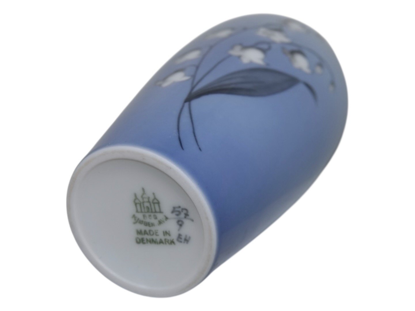 Bing & Grøndahl vase med liljekonvaller. Af fabriksmærket ses det, at denne er produceret mellem 1952 og 1958. Dekorationsnummer 57/9. 1. sortering. Højde 16,5 cm. Perfekt stand uden fejl.