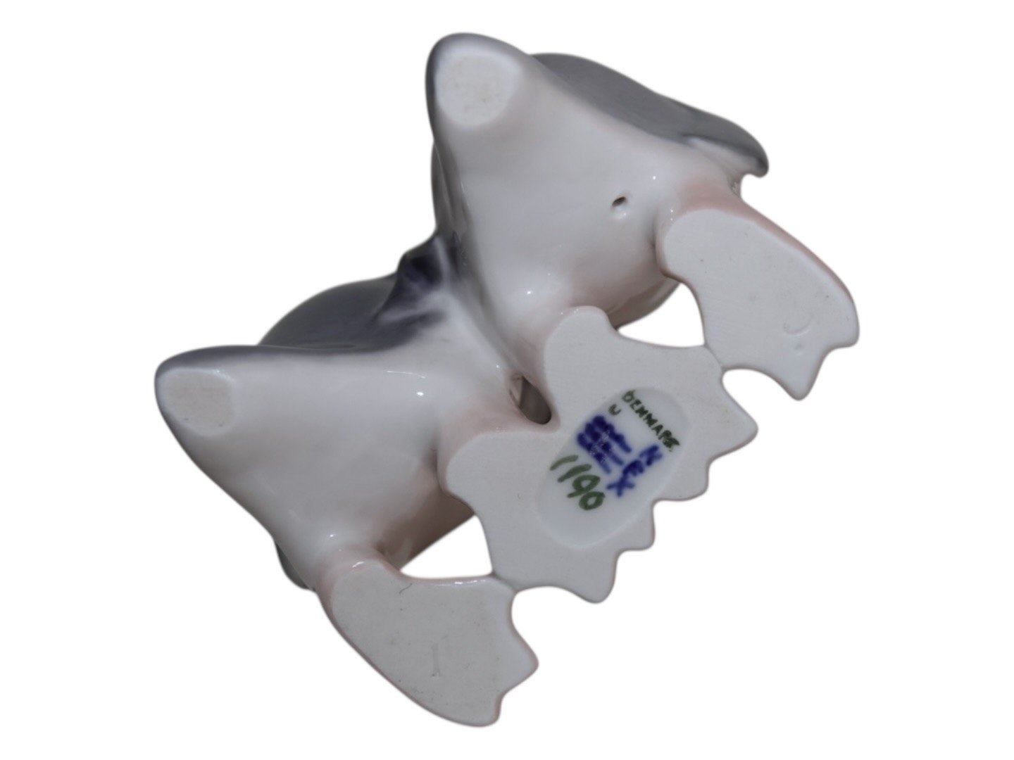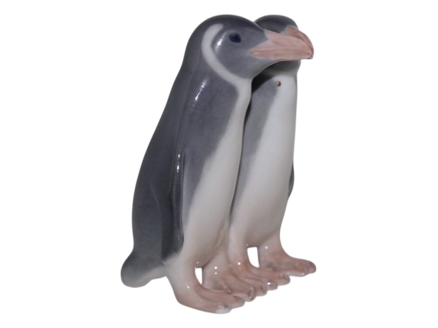Royal Copenhagen figur, to pingviner. Dekorationsnummer 1190. 2. sortering pga. en lille sort plet i glasuren, se foto 1. Højde 9,5 cm. Perfekt stand uden fejl.