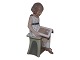 Stor Dahl Jensen figur, pige med bog siddende på lysegrøn stol.