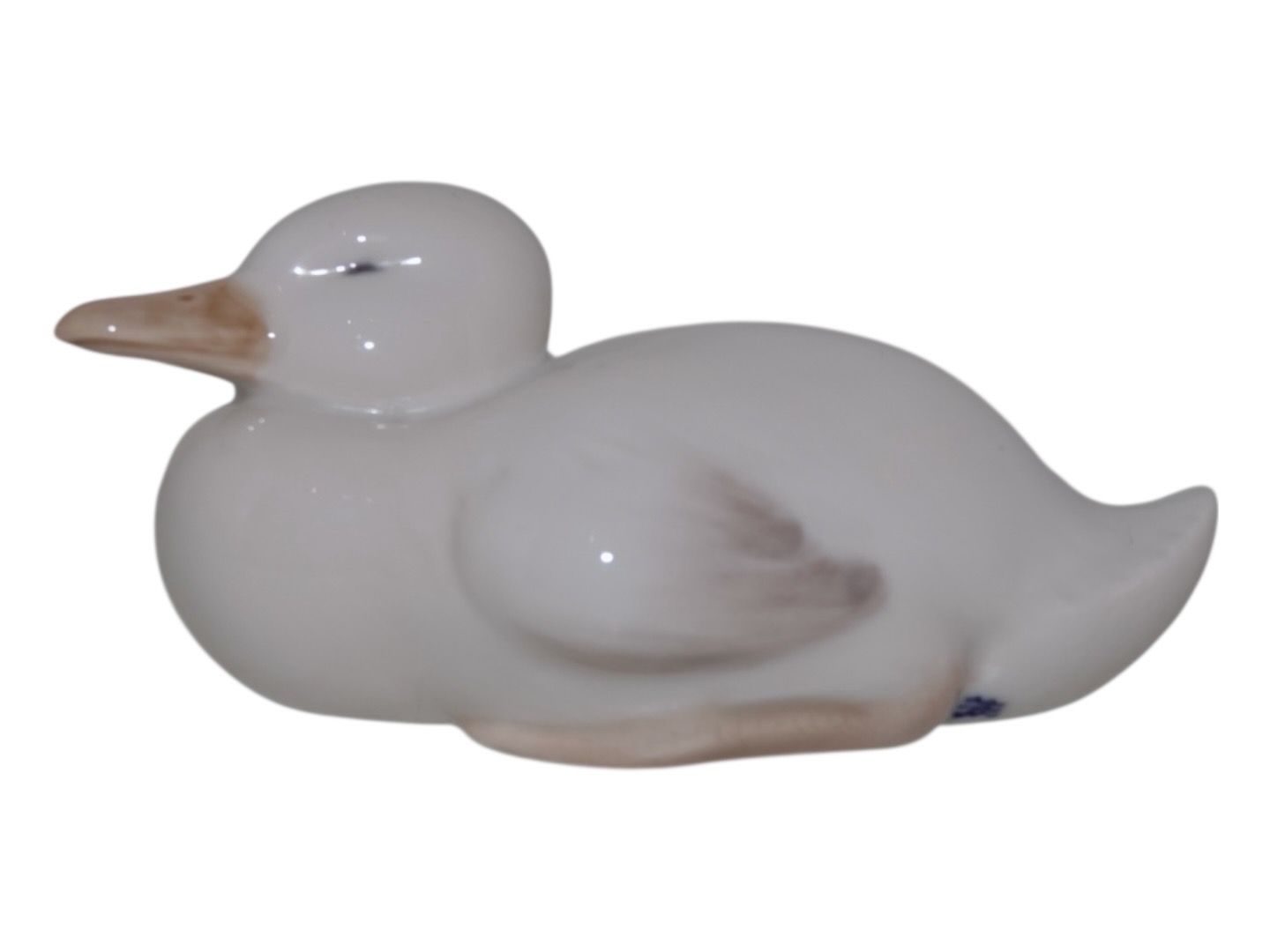 Sjælden Royal Copenhagen figur, hvid and. Fabriksmærket viser at denne er produceret i mellem 1894 og 1897. 1. sortering. Længde 11,1 cm. Perfekt stand uden fejl.