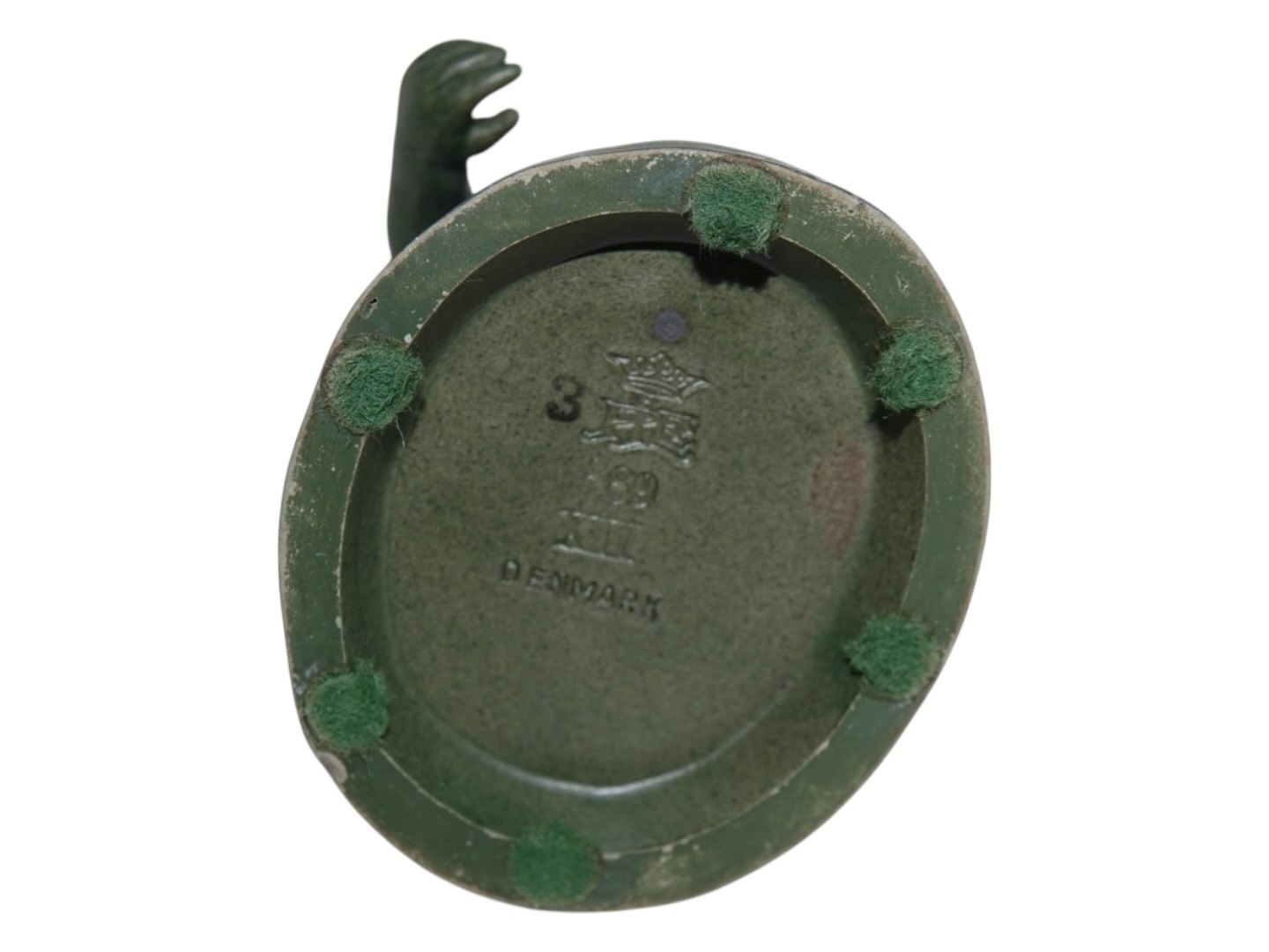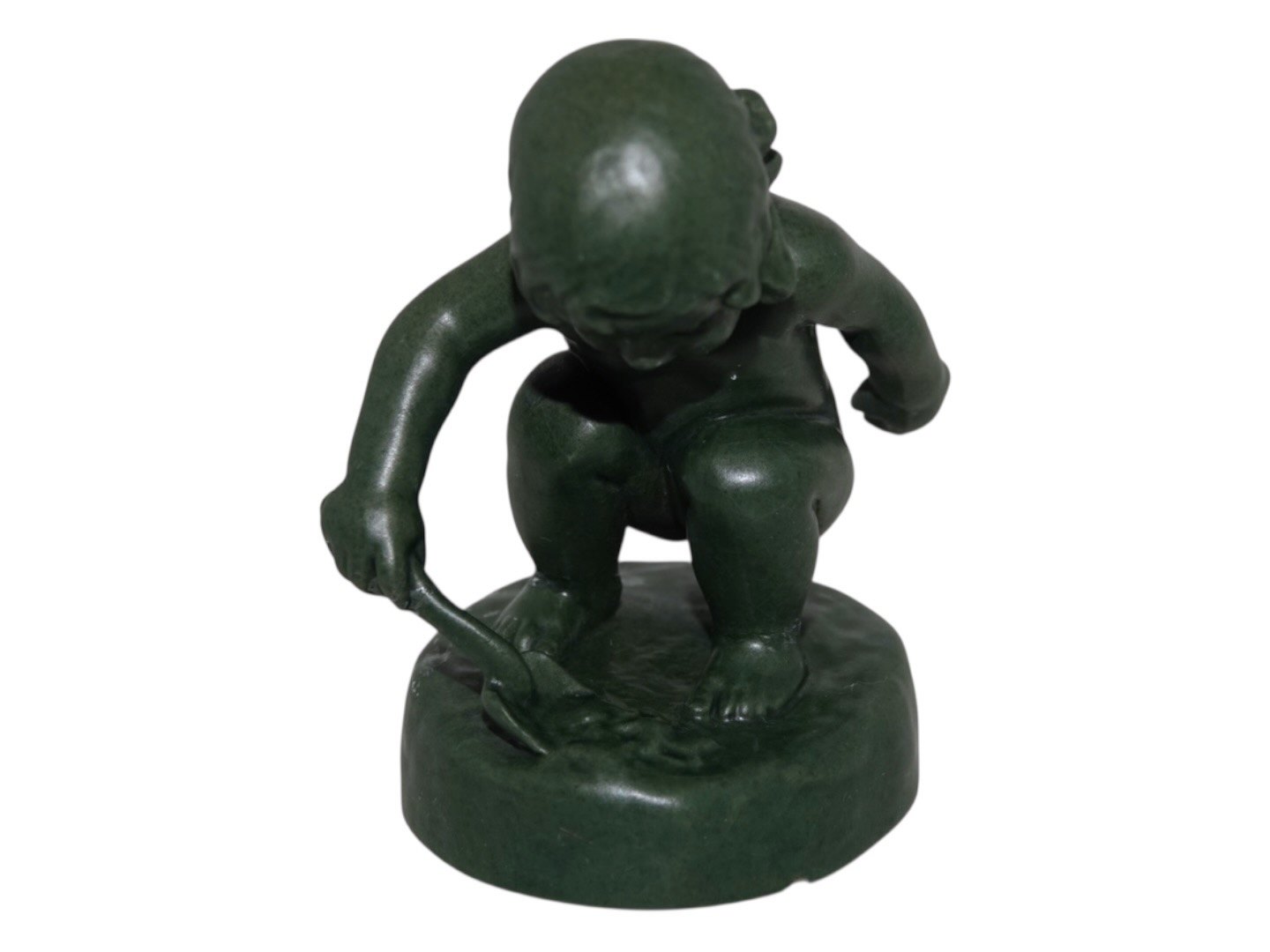Ipsen keramik med grøn glasur. Figur af pige med sandskovl. Dekorationsnummer 889. Højde 10,0 cm. Perfekt stand uden fejl.