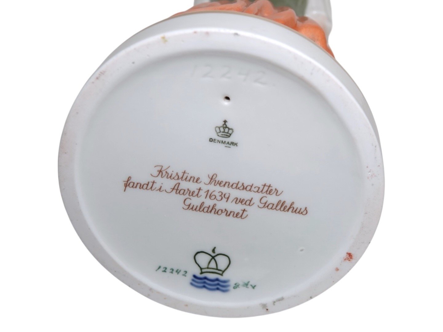 Royal Copenhagen figur, Pigen med guldhornet i overglasur. Dekorationsnummer 12242. 1. sortering. Højde 22,0 cm. Perfekt stand uden fejl.