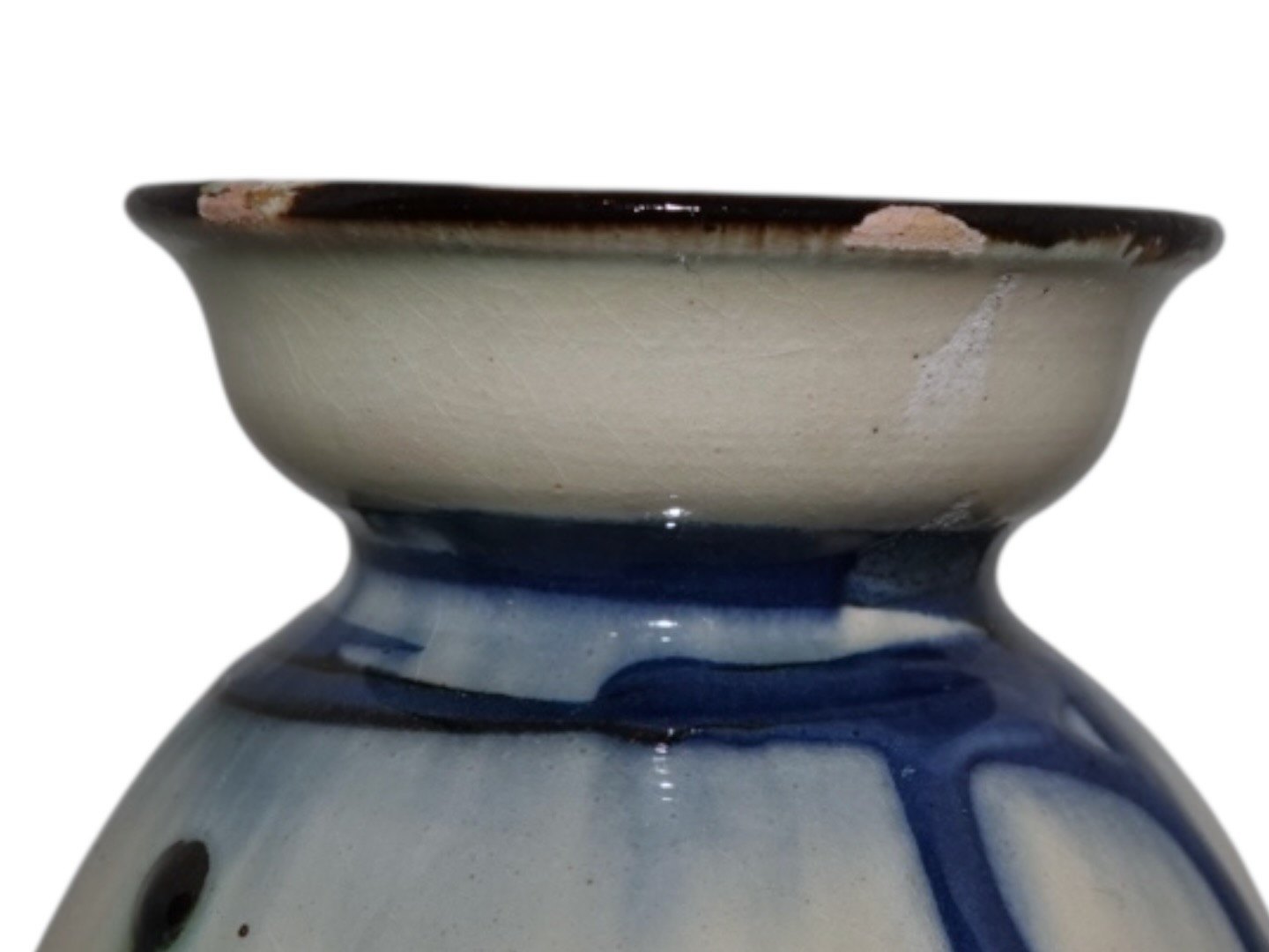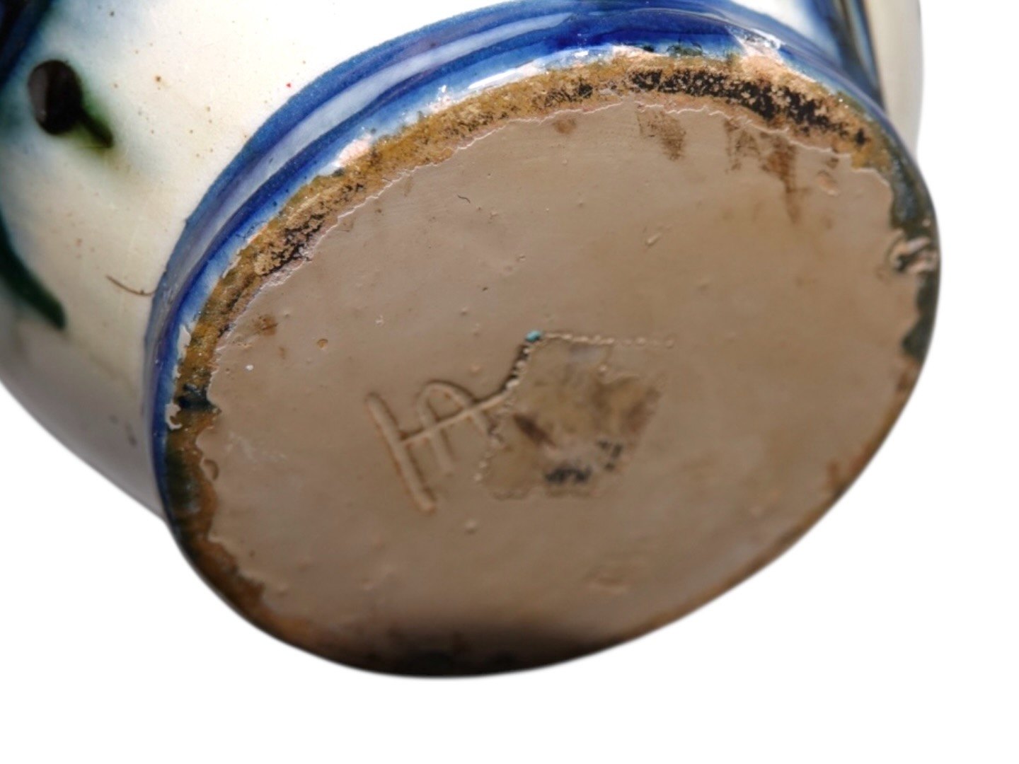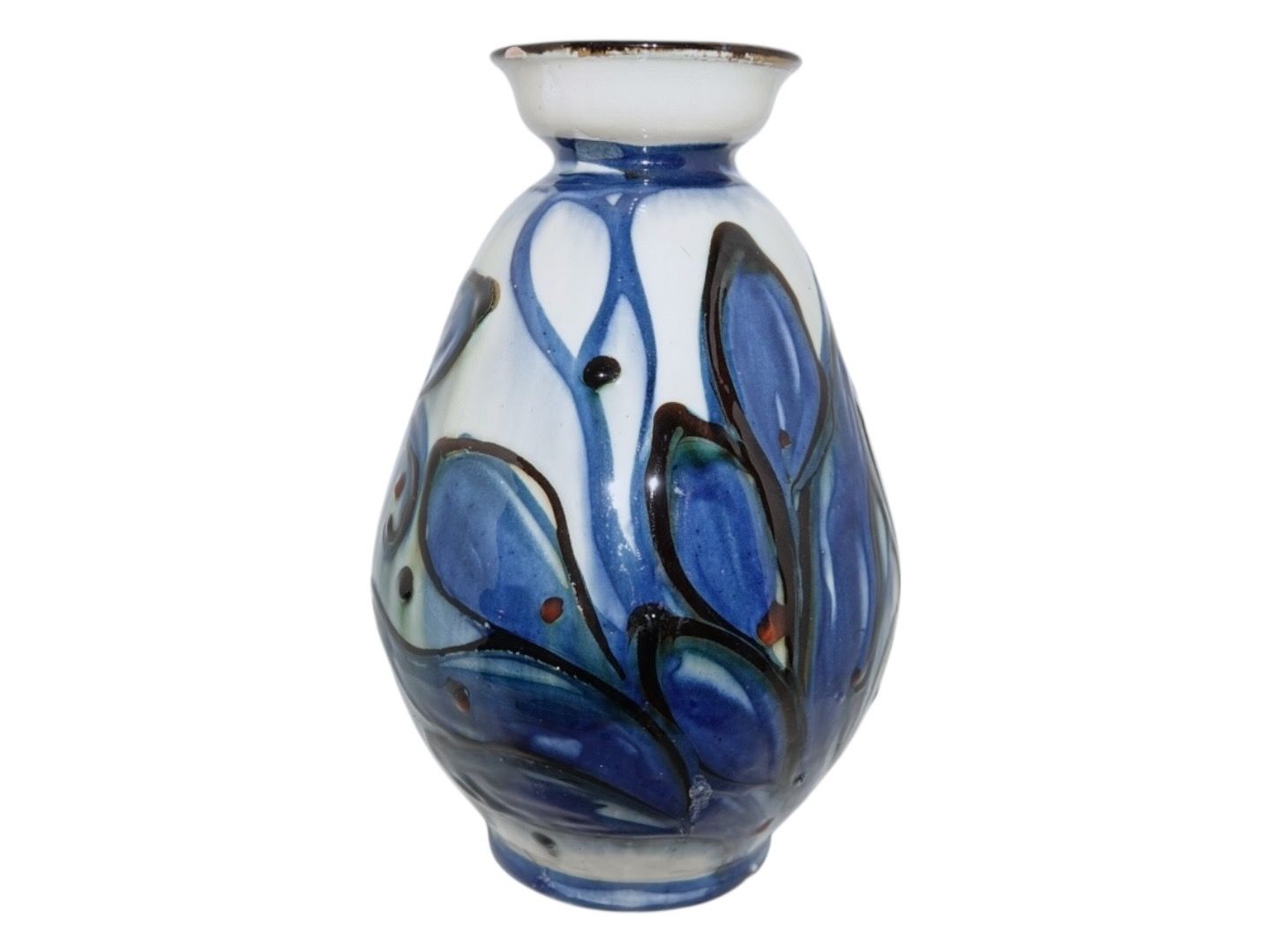 Kähler keramik, større vase med blå og hvid dekoration. Vasen er produceret i starten af 1900 tallet. Højde 25,0 cm. Der er nøk/små skår i både toppen og bunden af vasen, se fotos.
