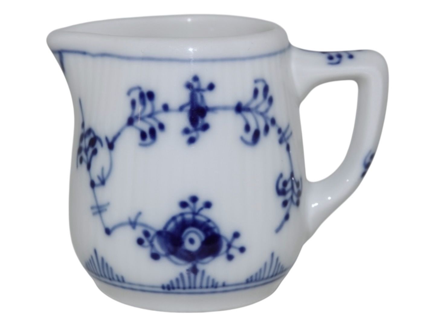 Royal Copenhagen Musselmalet Riflet i tykt jernporcelæn, miniature flødekande.