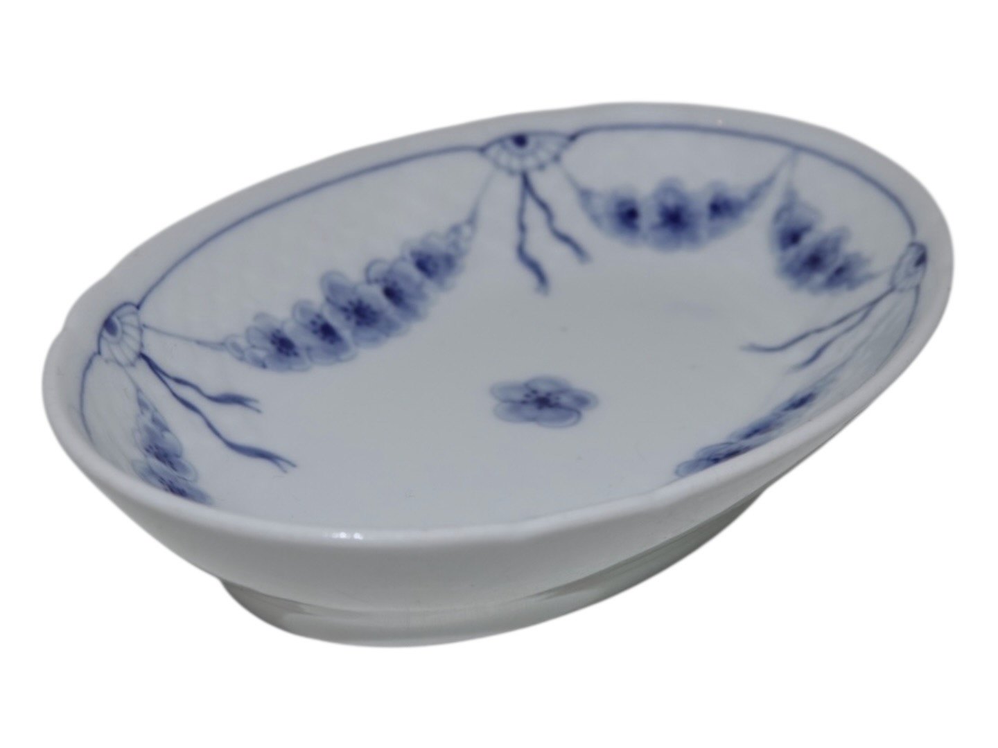 Bing & Grøndahl Empire, lille oval asiet. Af fabriksmærket kan det udledes, at denne er produceret mellem 1915 og 1948. 2. sortering. Længde 17,8 cm. Perfekt stand uden fejl.