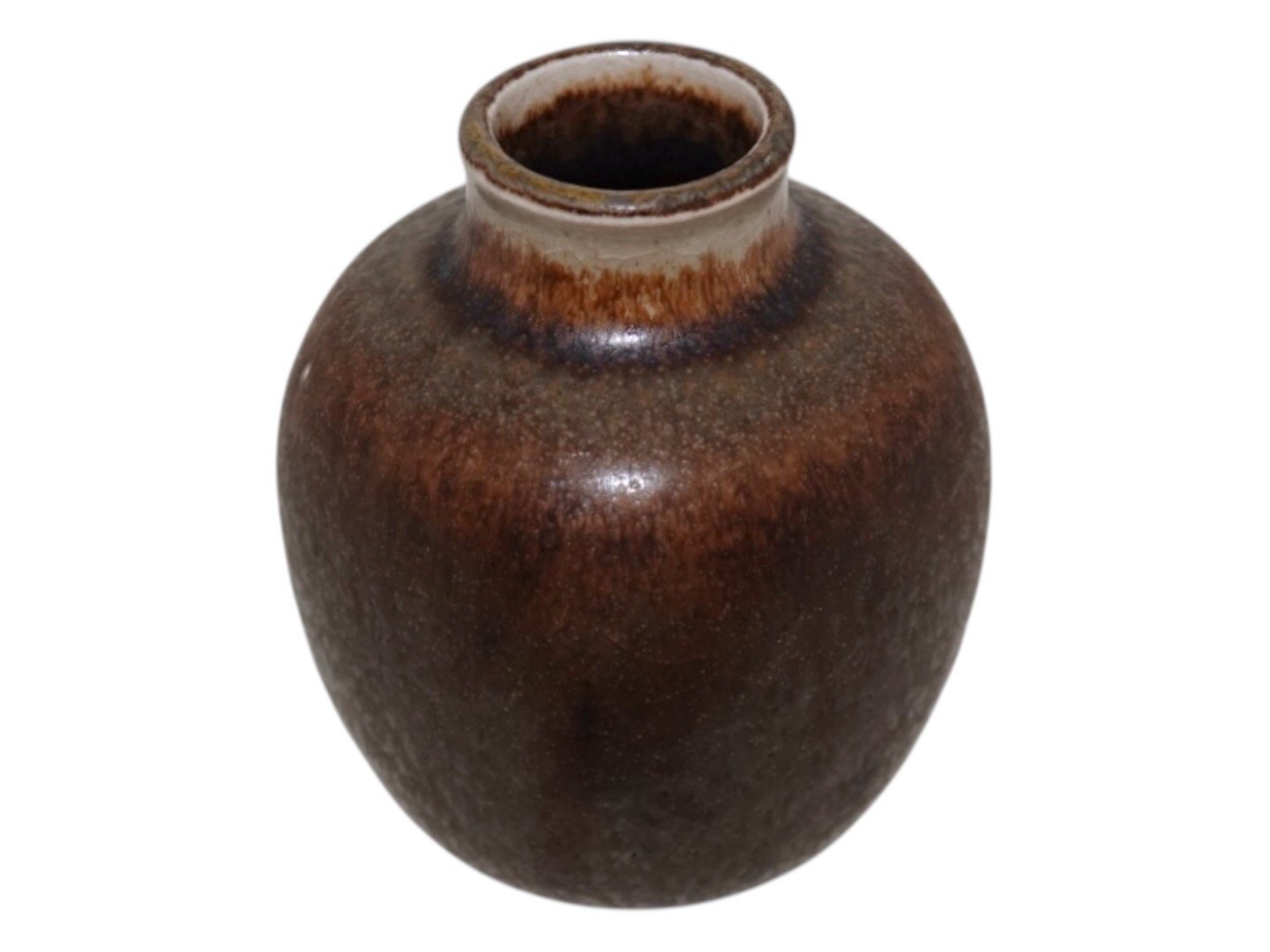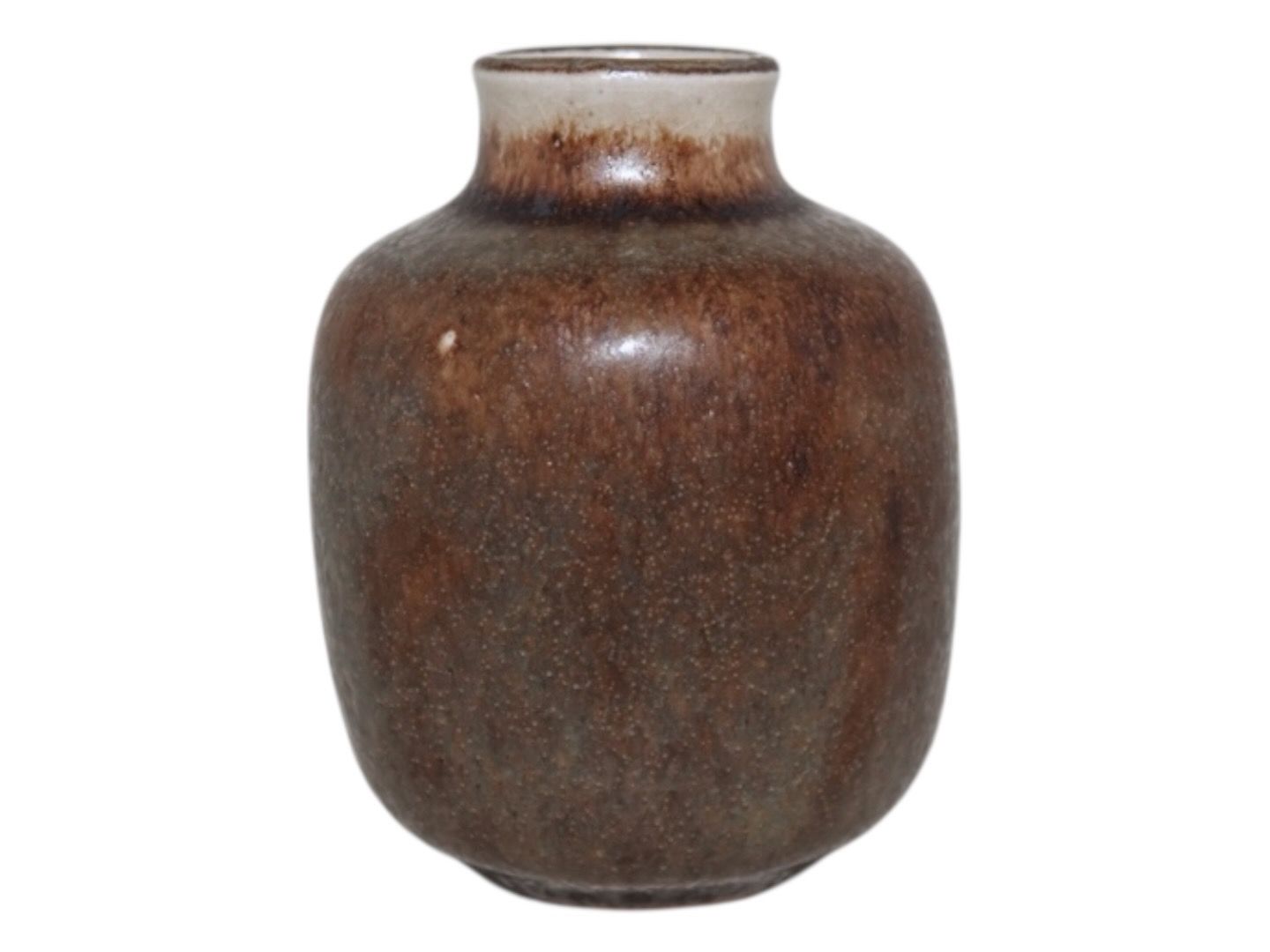 Royal Copenhagen keramik, miniature vase af Nils Thorsson. Dekorationsnummer 21400. 1. sortering. Højde 8,2 cm. Der er et par medfødte små lyse pletter i glasuren, se fotos. Ellers perfekt stand uden fejl.