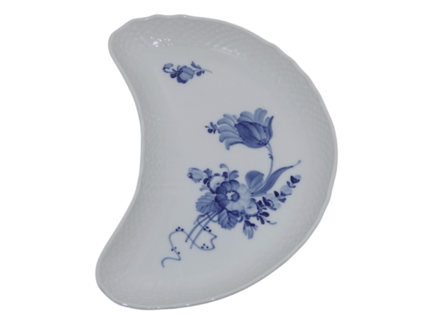 Royal Copenhagen Blå Blomst Svejfet, måneformet asiet.