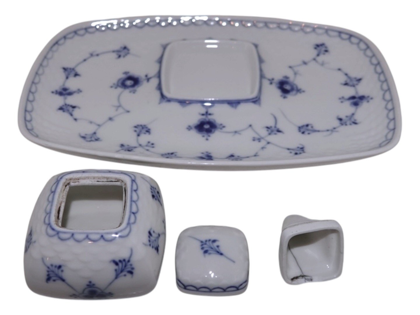 Bing & Grøndahl Blåmalet (Musselmalet), sjældent blækhus med tragt.