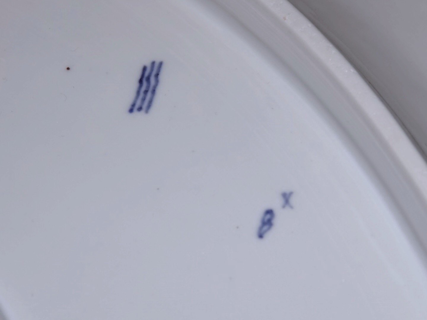 Royal Copenhagen Musselmalet Riflet, ekstra stort stegefad. Fabriksmærket viser, at denne er produceret omkring 1820 til 1840. 1. sortering. Måler 48,0 x 37,0 cm. Perfekt stand uden fejl.