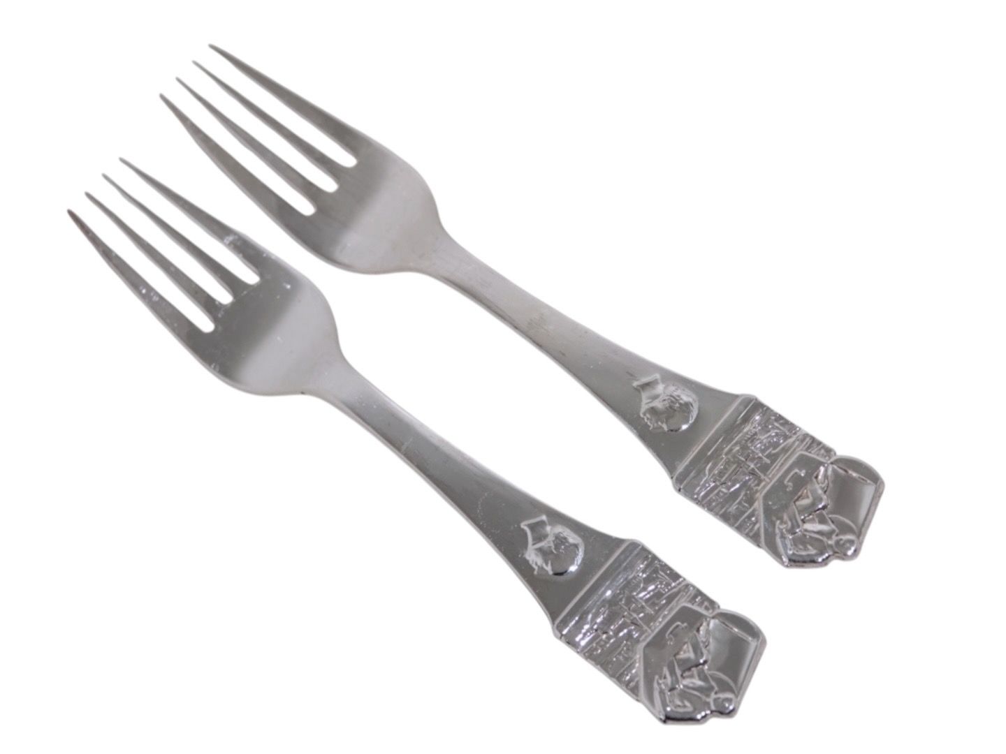 H.C. Andersens Eventyr Børnebestik fra Prima sølvplet. Barnegaffel - Den Flyvende Kuffert. Længde 14,4 cm. Perfekt stand - Det ser ud som nyt. Intern varenummer: BARN14