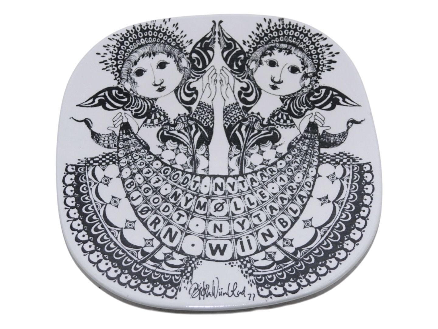 Sort Bjørn Wiinblad årsplatte Godt Nytår. Produceret hos Nymølle Keramik. Måler 18,8 x 18,8 cm. Perfekt stand.