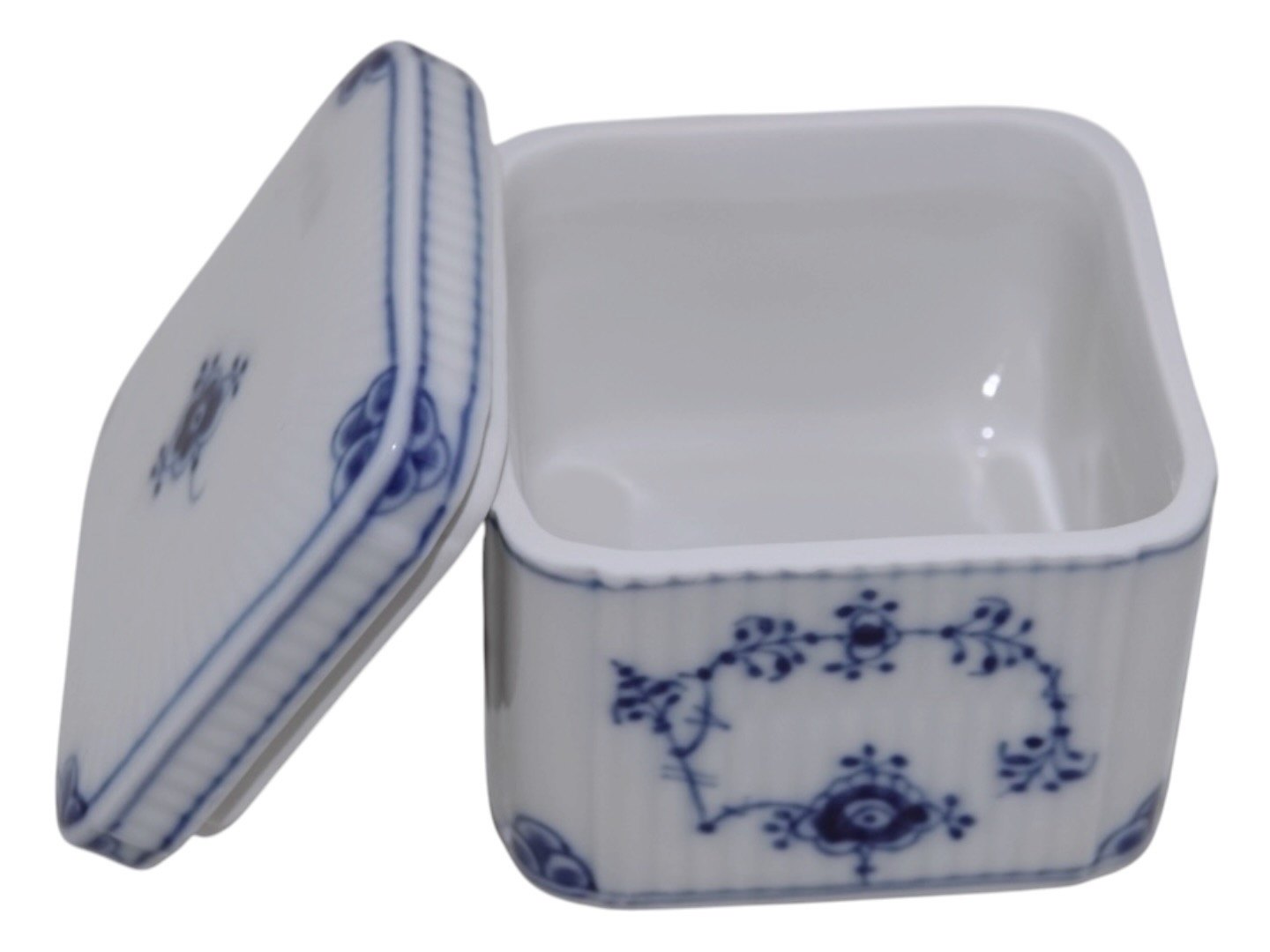 Royal Copenhagen Musselmalet Riflet, lille firkantet bonboniere.