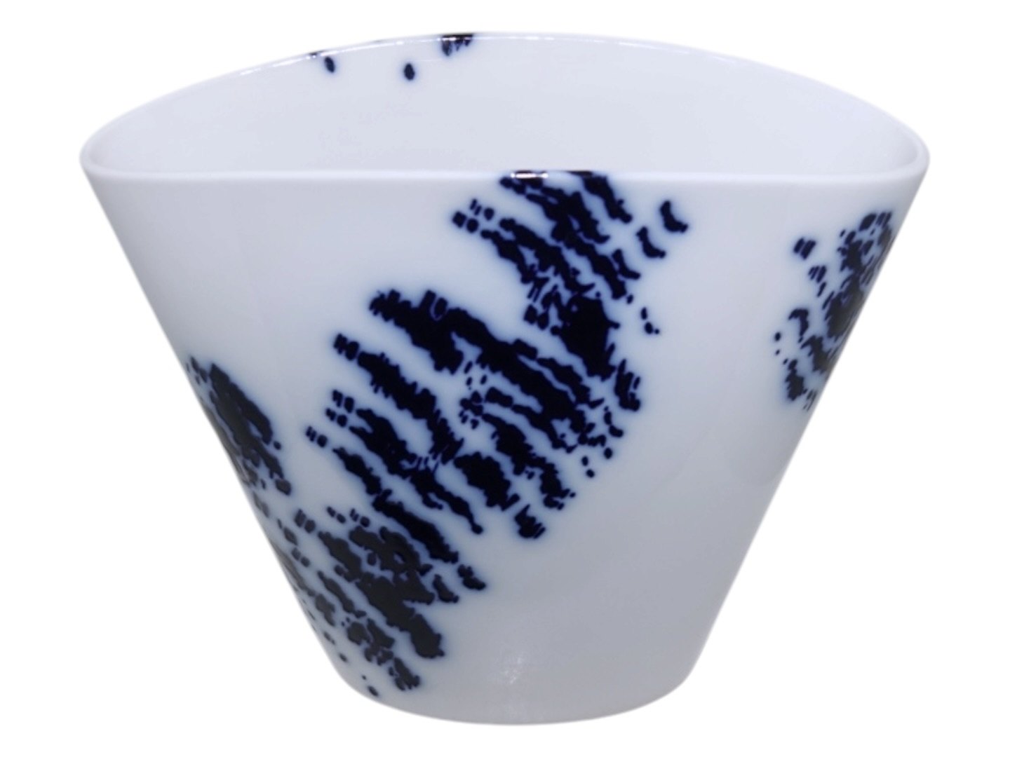 Royal Copenhagen kunstporcelæn, stor blå og hvid vase af Ivan Weiss. 1. sortering. Højde 22,0 cm., bredde 25,5 cm. Perfekt stand uden fejl.